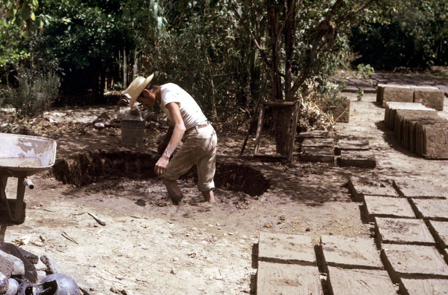 man, adobe aanmakend voor adobe stenen