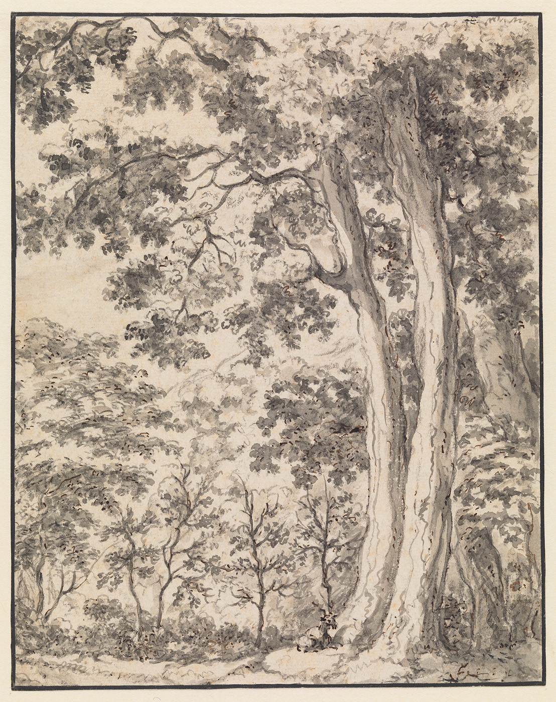 Een bosgezicht met een hert