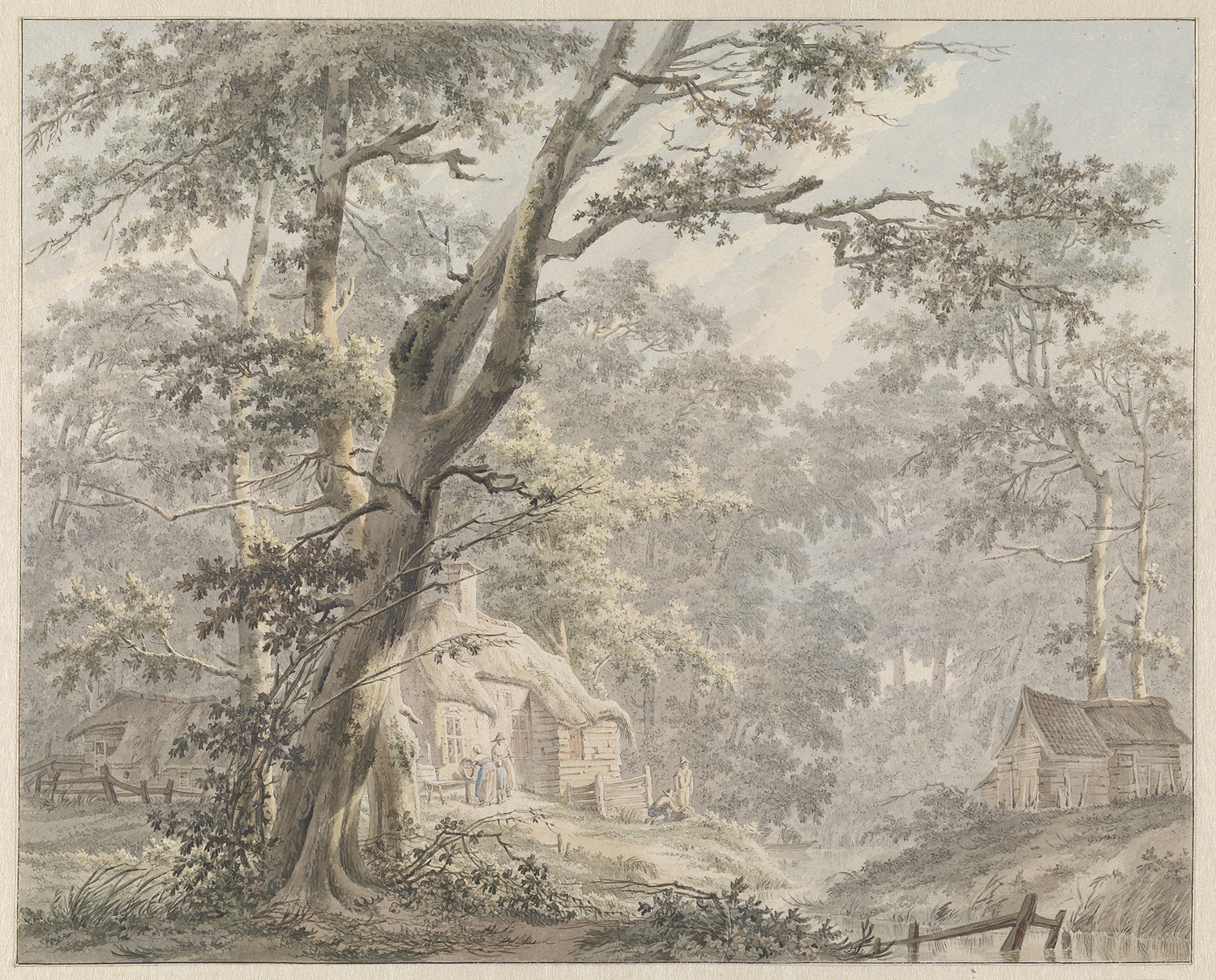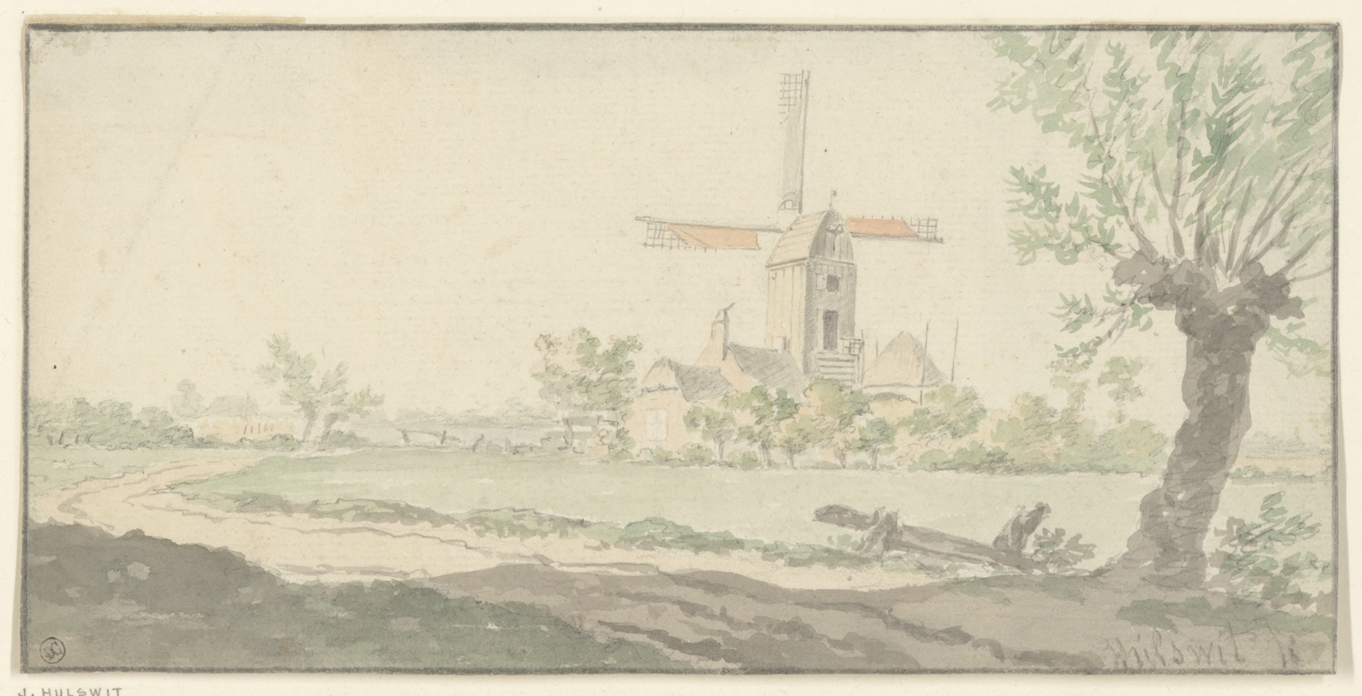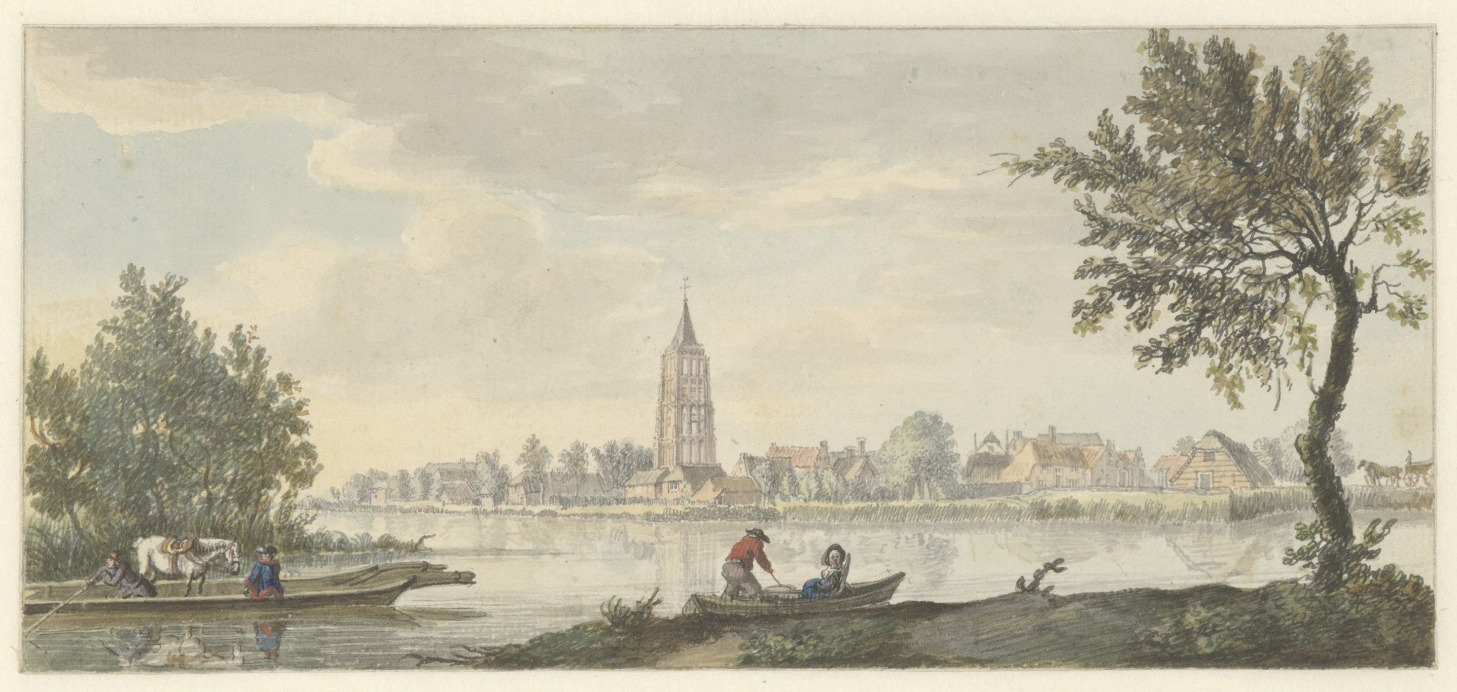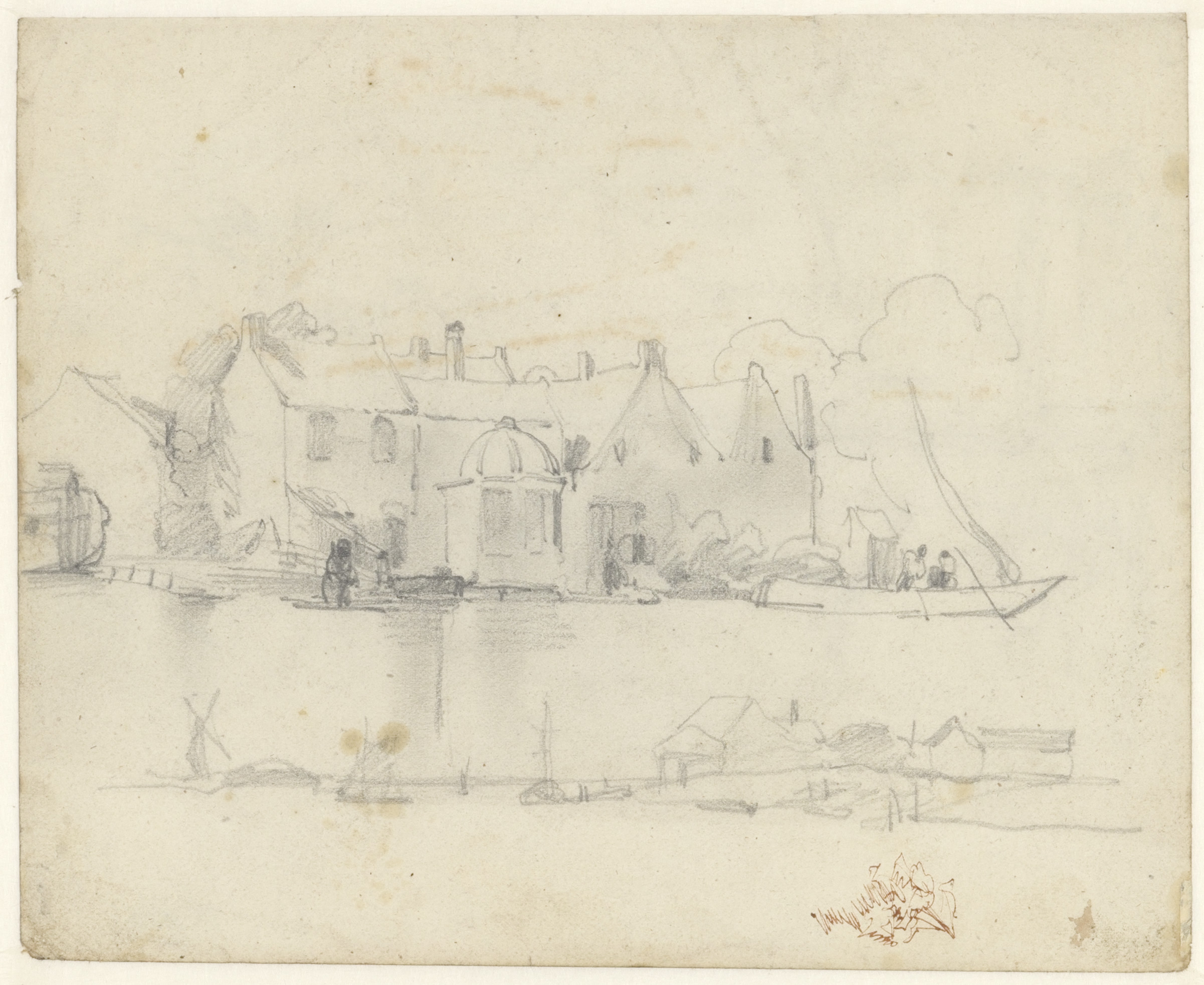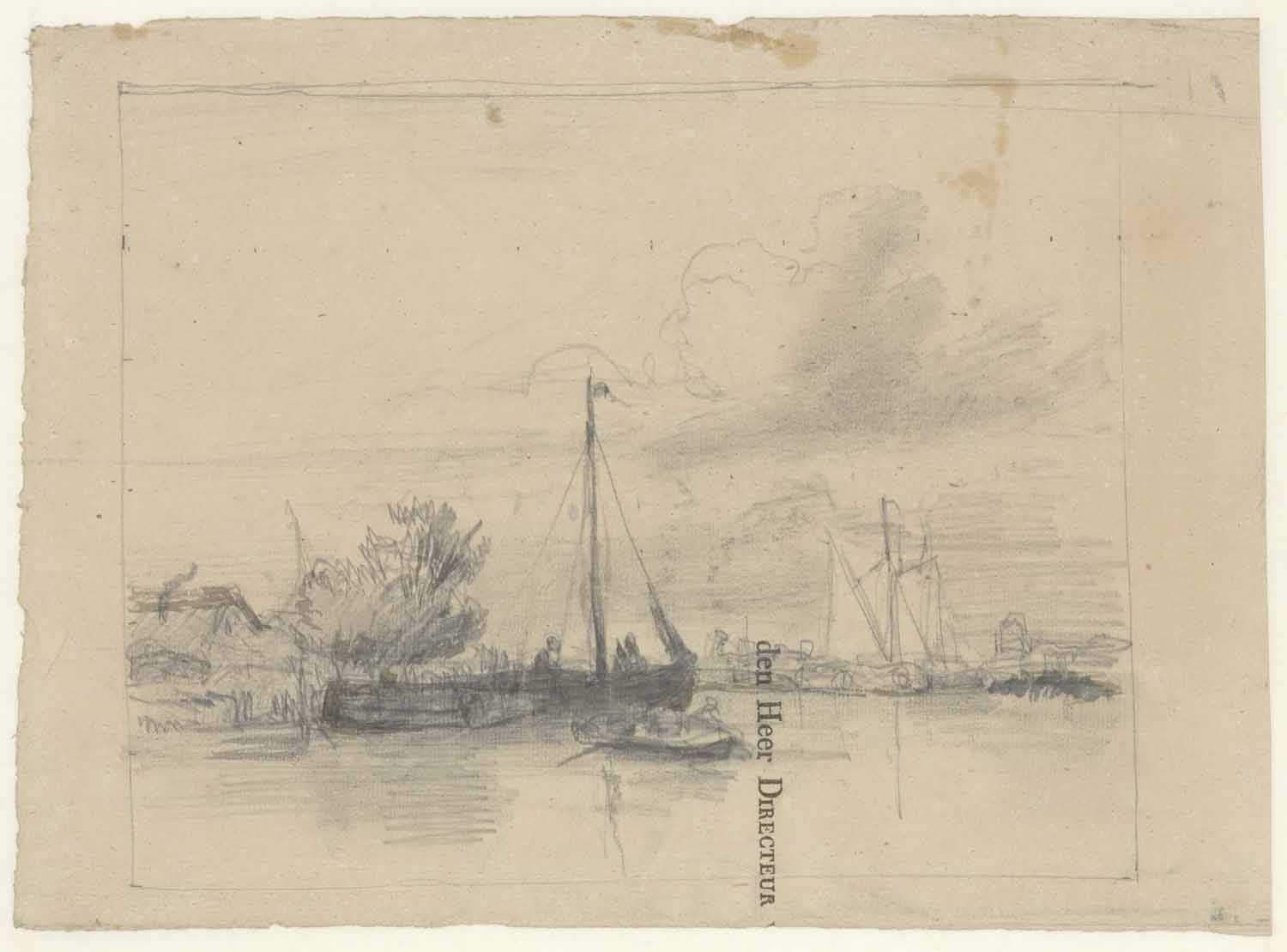 Riviergezicht; verso: tuigage van een schip