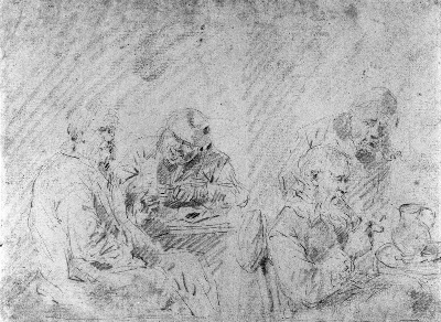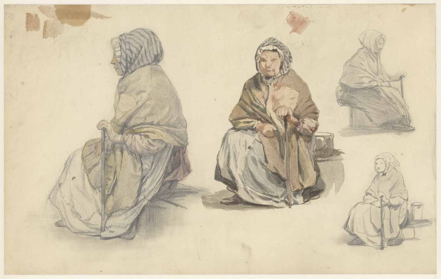 Studieblad: twee studies van oude vrouw en twee in k...