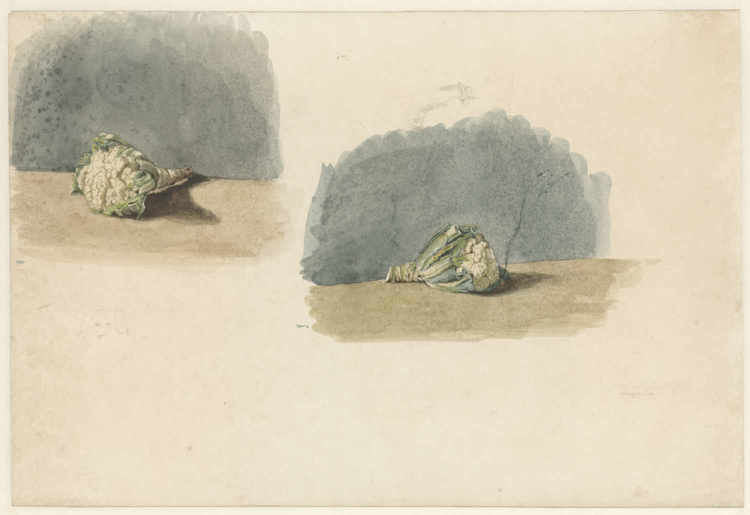Twee studies van bloemkool, verso: bloemkool
