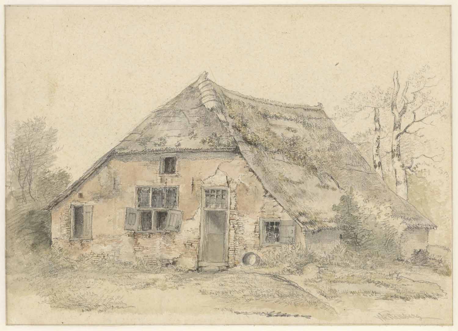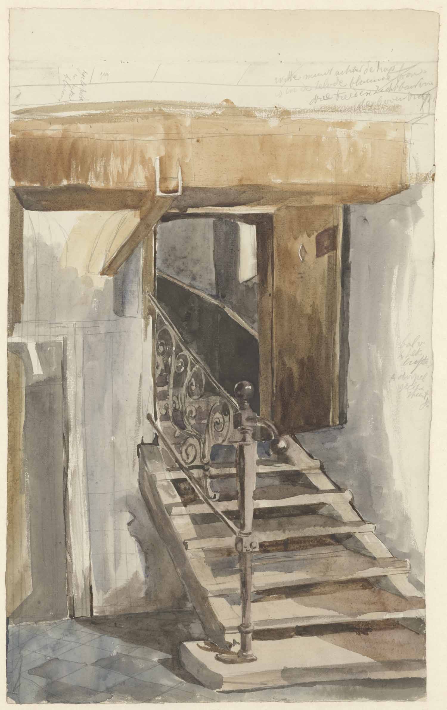 Een keldertrap. Boerenkamer met waschtobbe (verso)
