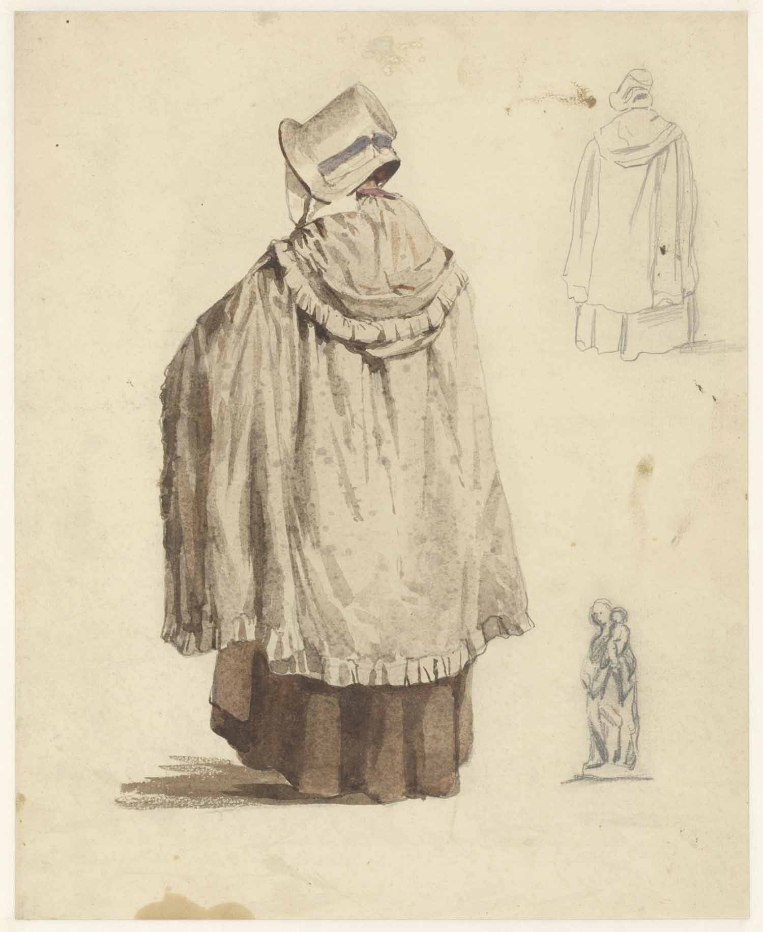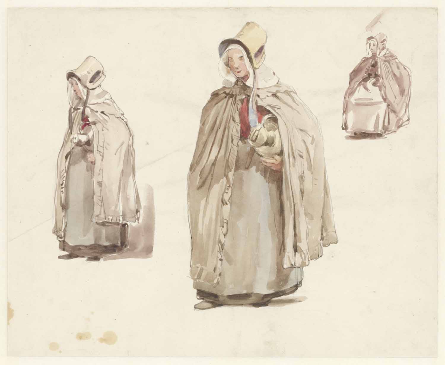Drie studies van een vrouw met een kruik