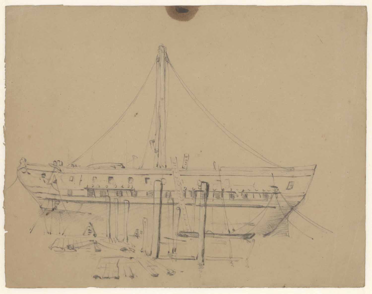 Studie van een onttakeld schip