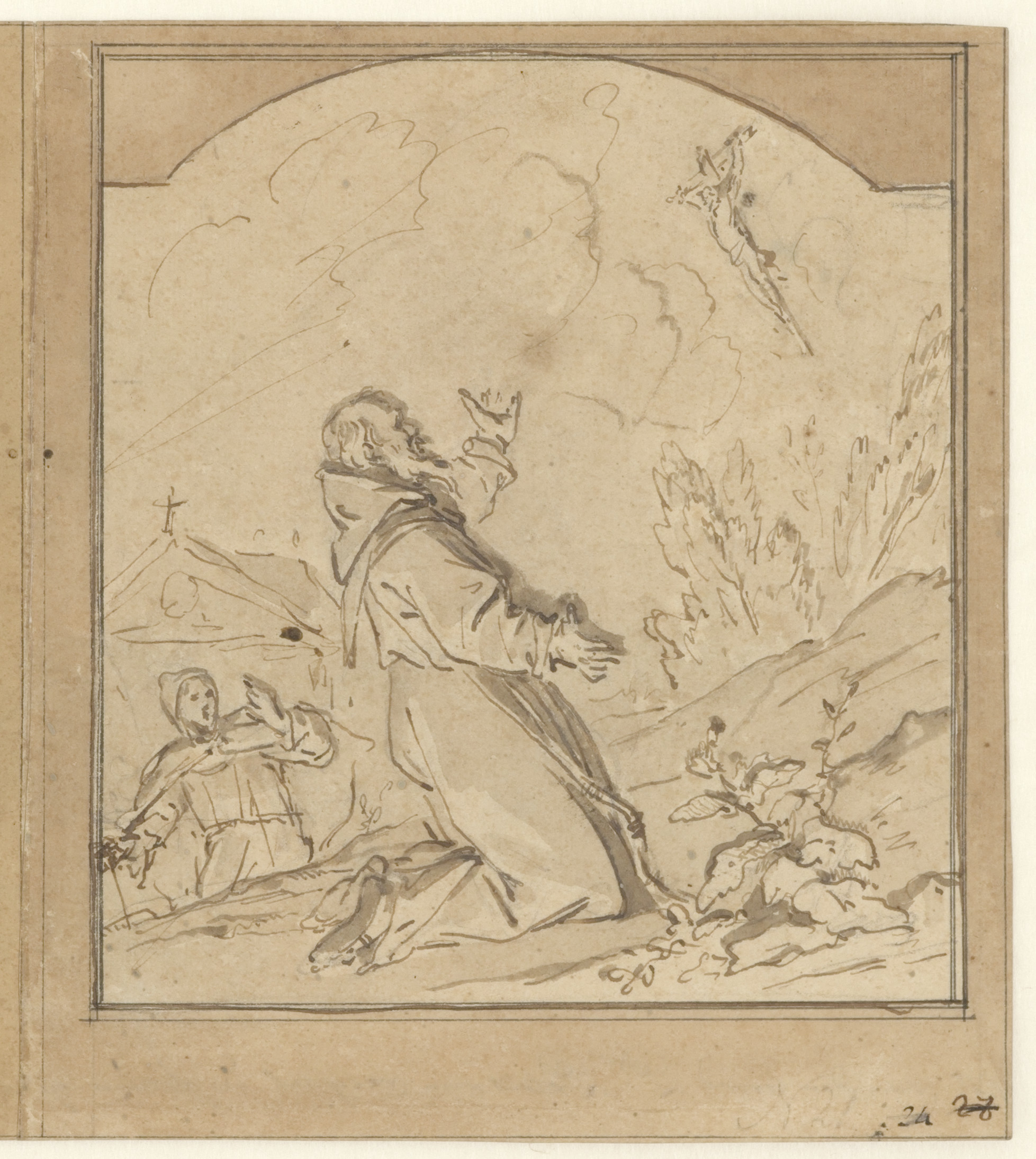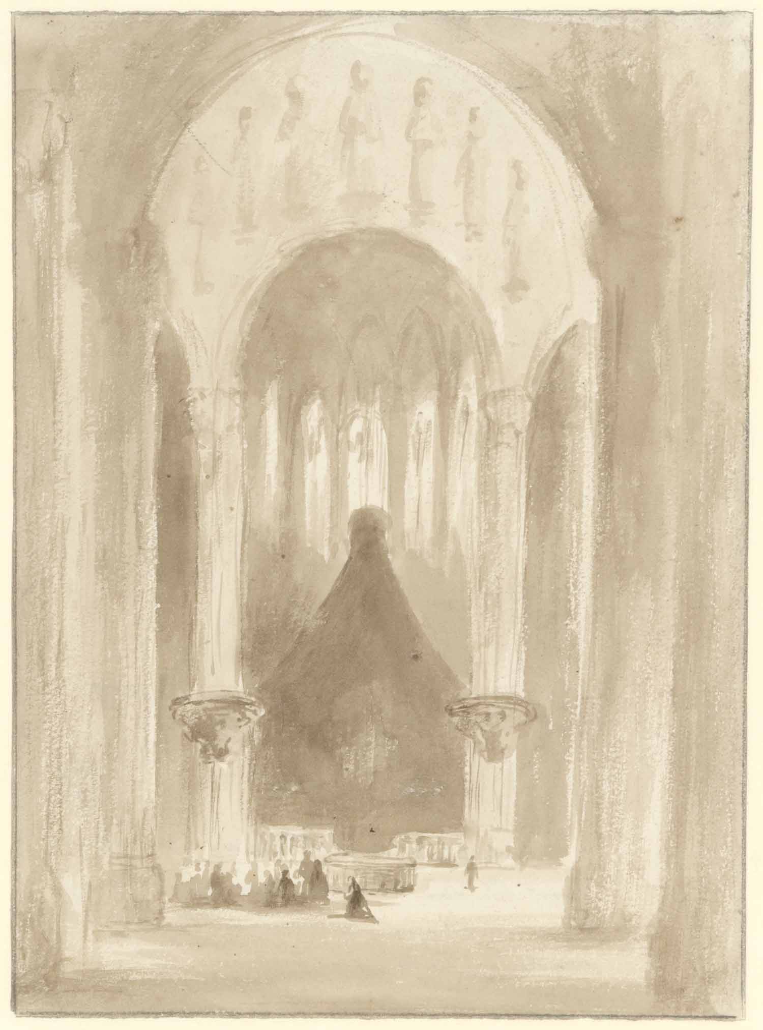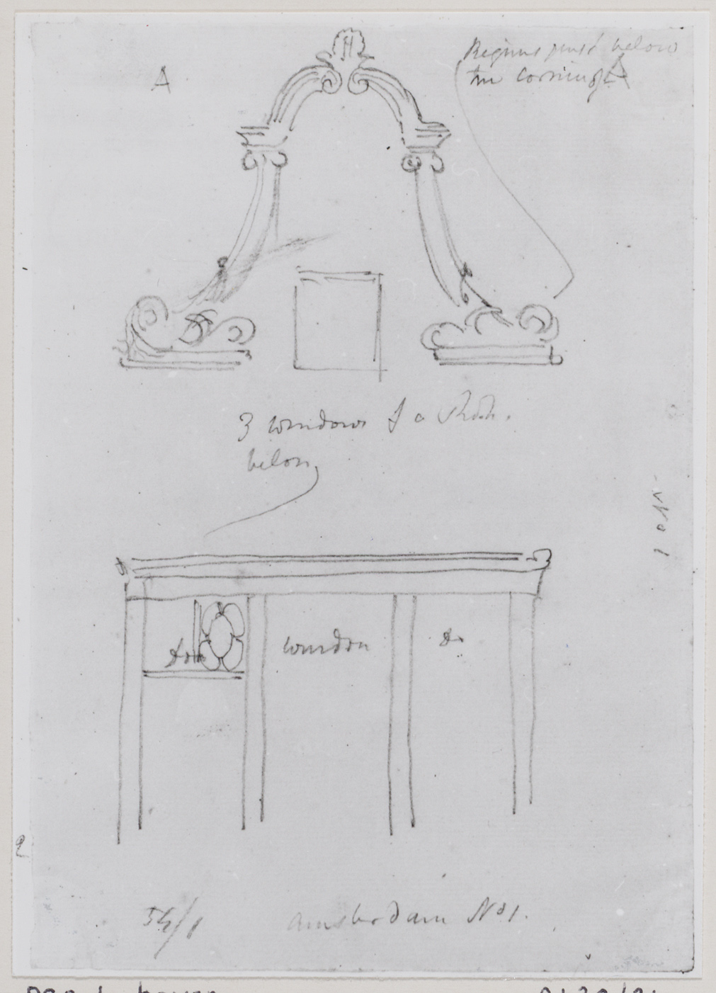 Studieblad: deur en ingang van een kerk, en studies ...