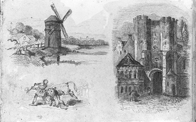Studieblad met landschapstudies en historiestudies, ...