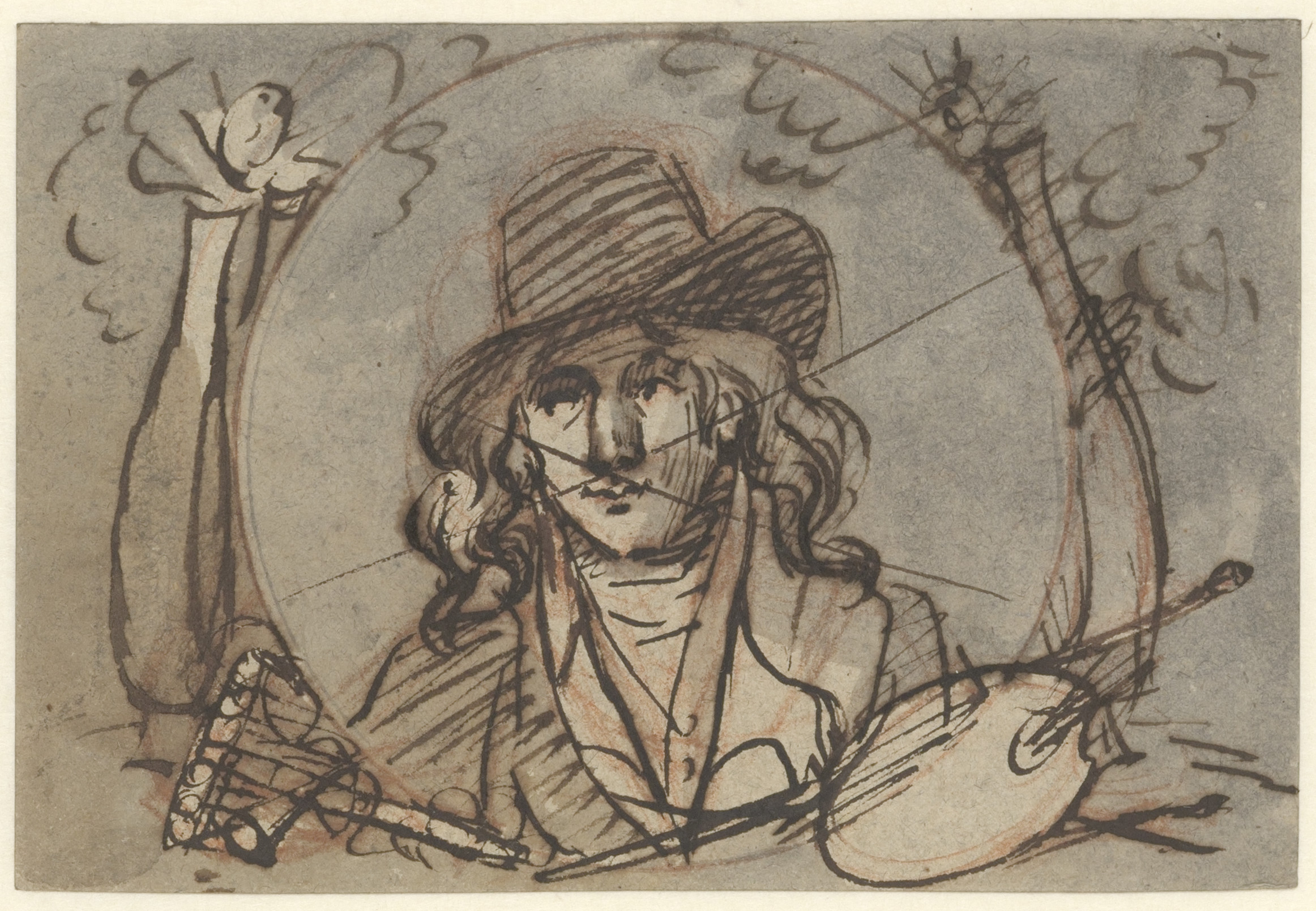Een studieblad met twee kopieën naar Adriaen Brouwer