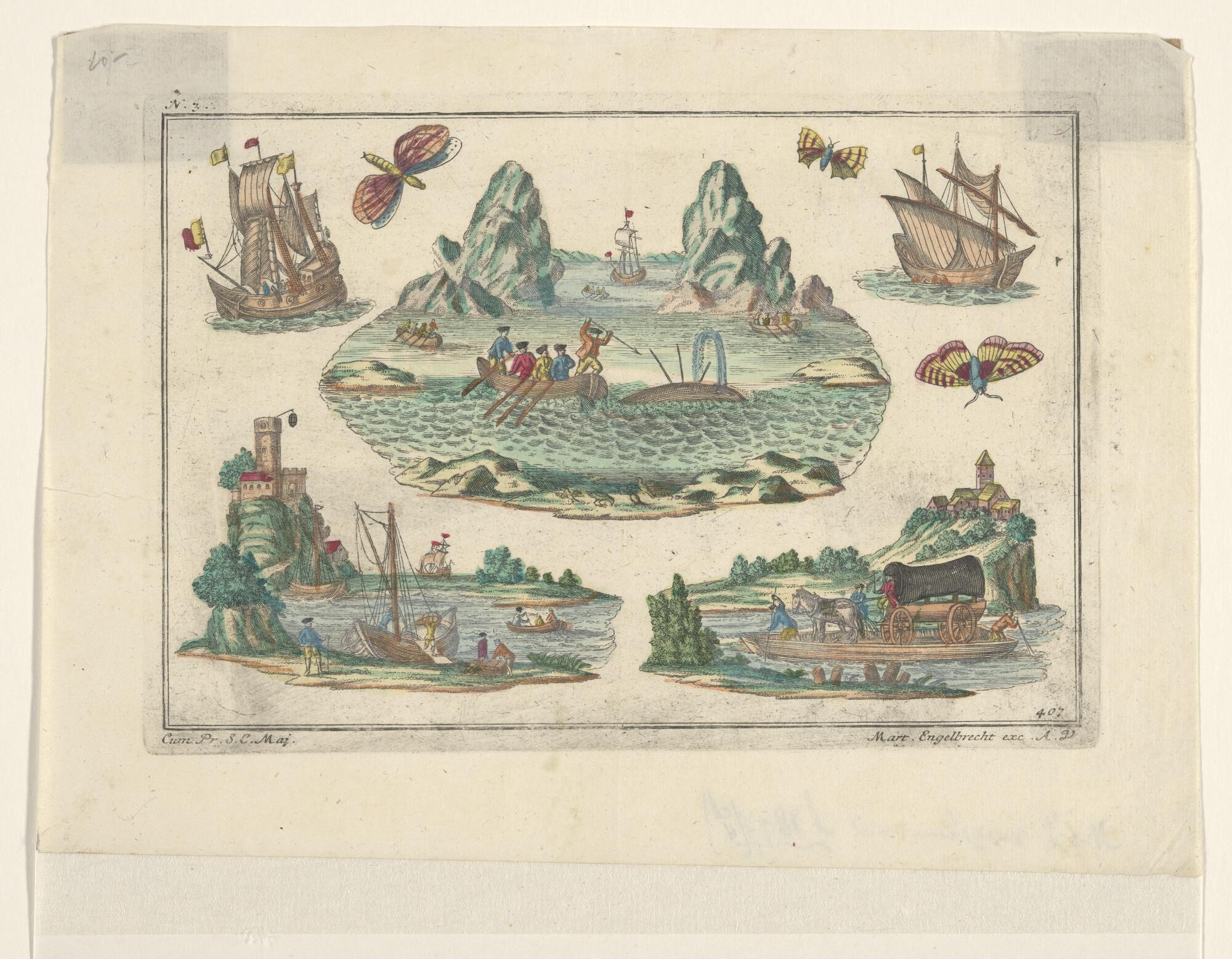 Blad met losstaande prentjes m.b.t. de scheepvaart e...