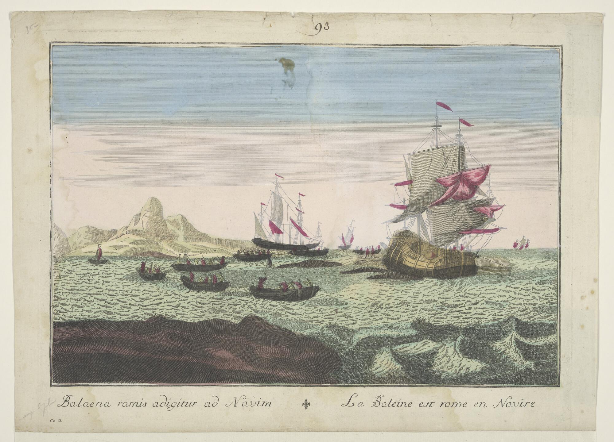 De Walvisvangst: de walvis wordt naar het schip geroeid