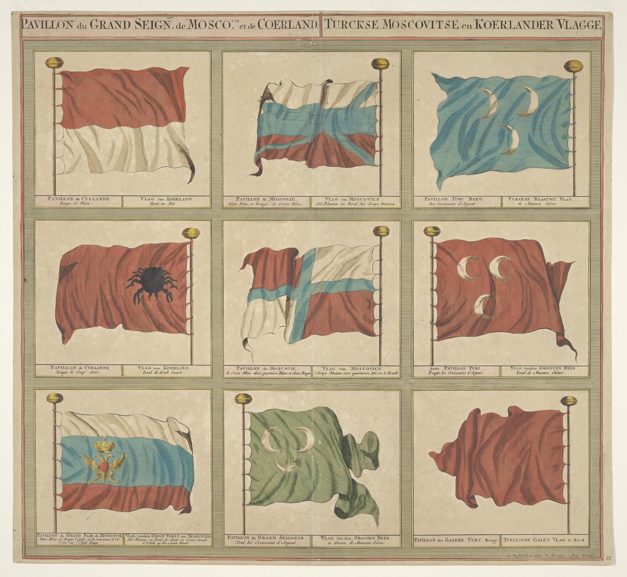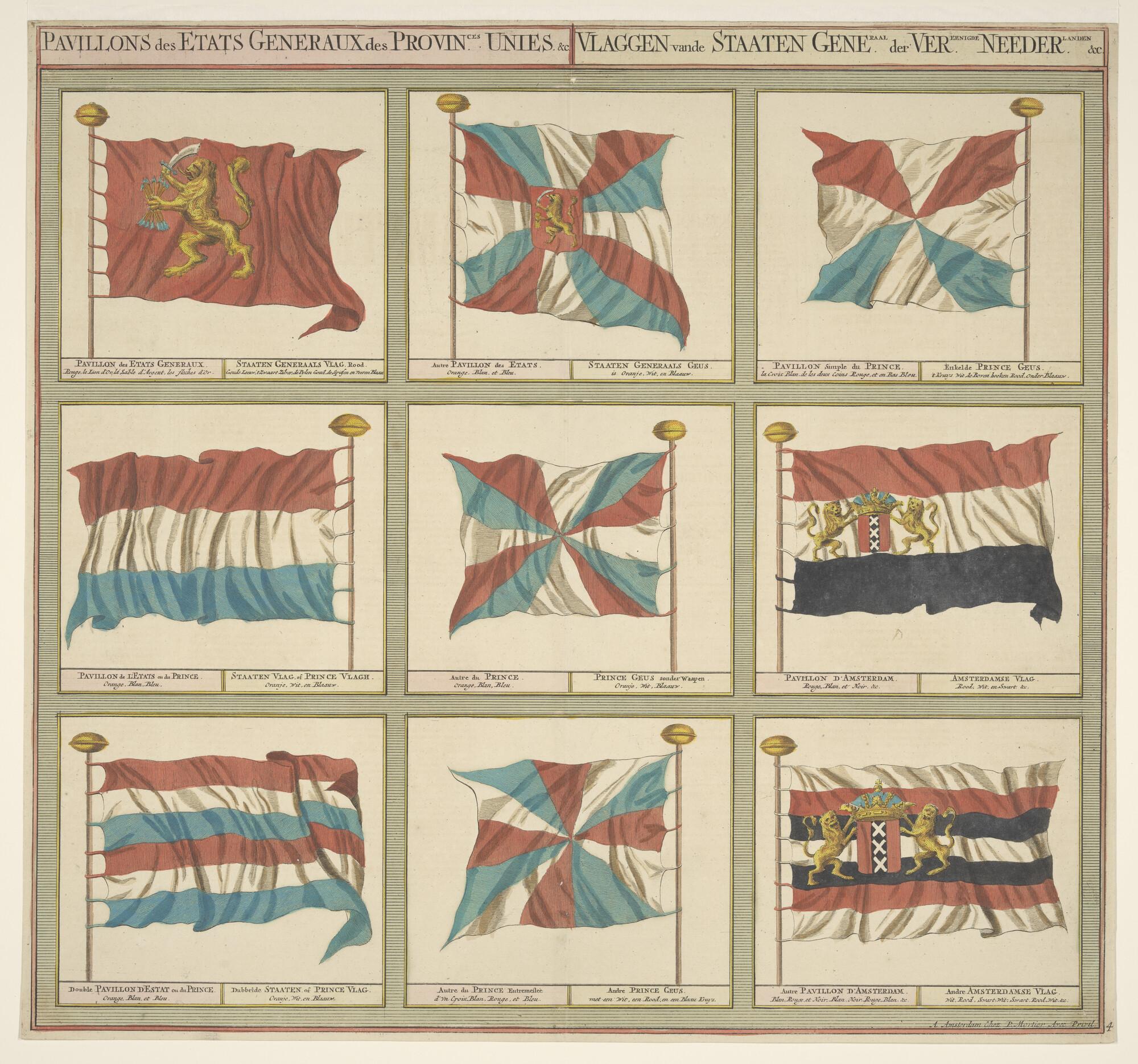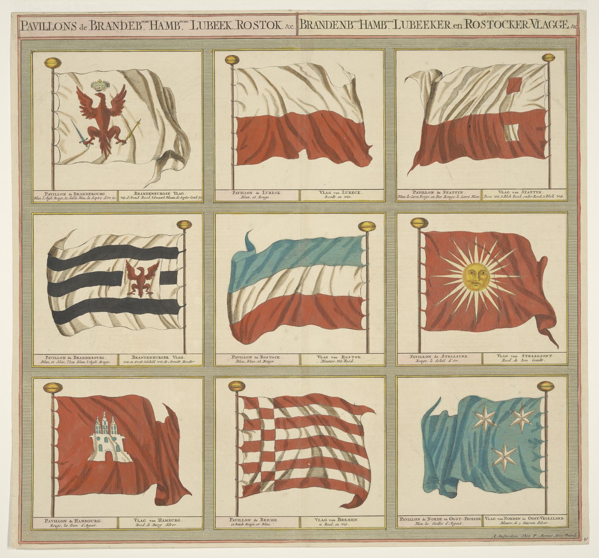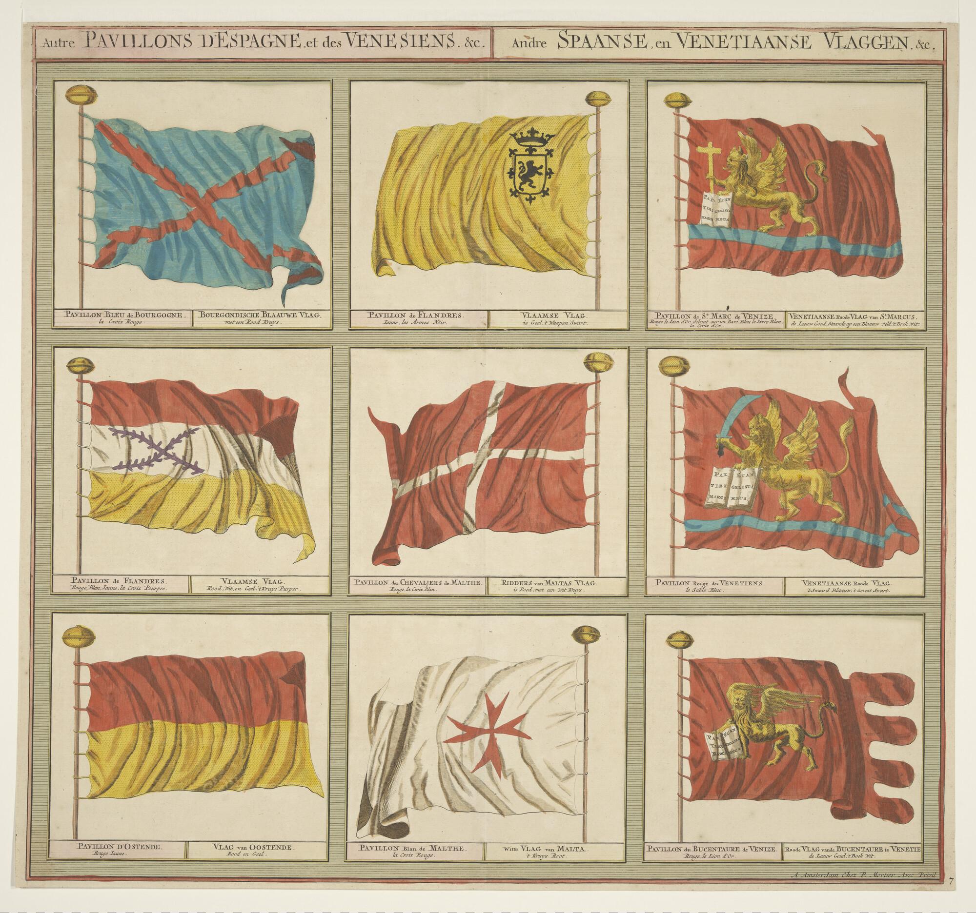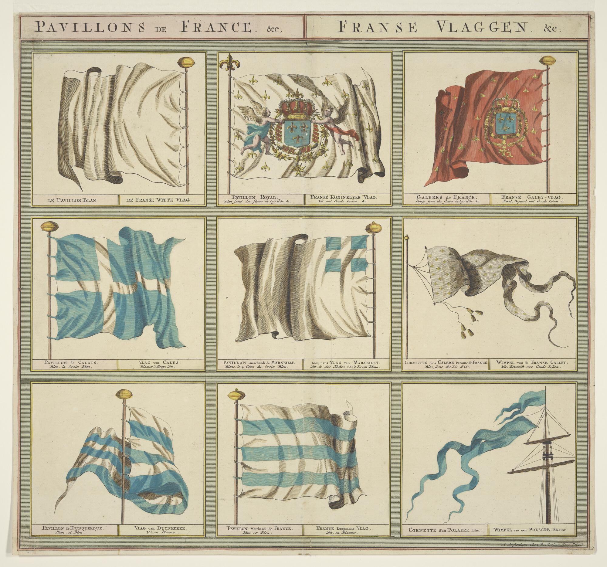 'Pavillons de France.' Vlaggenkaart met 9 vlaggen ui...