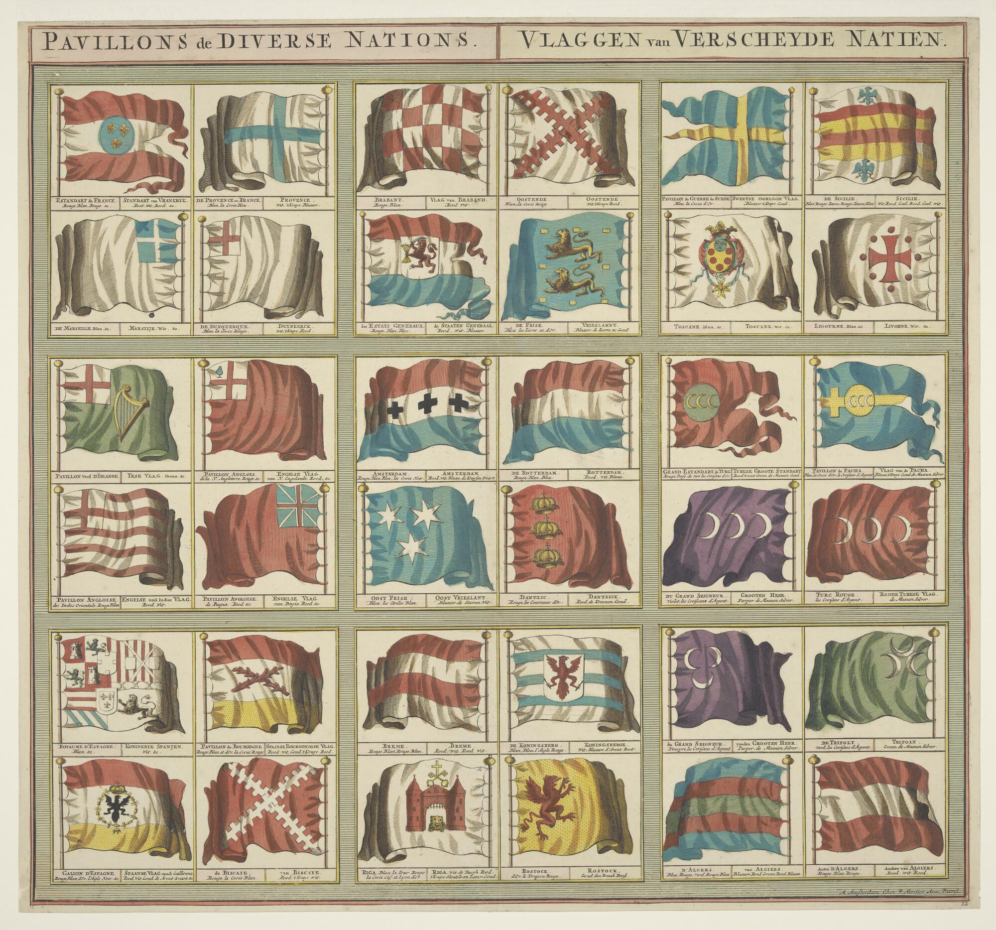 Vlaggenkaart met 36 vlaggen uit een serie van 12 bladen