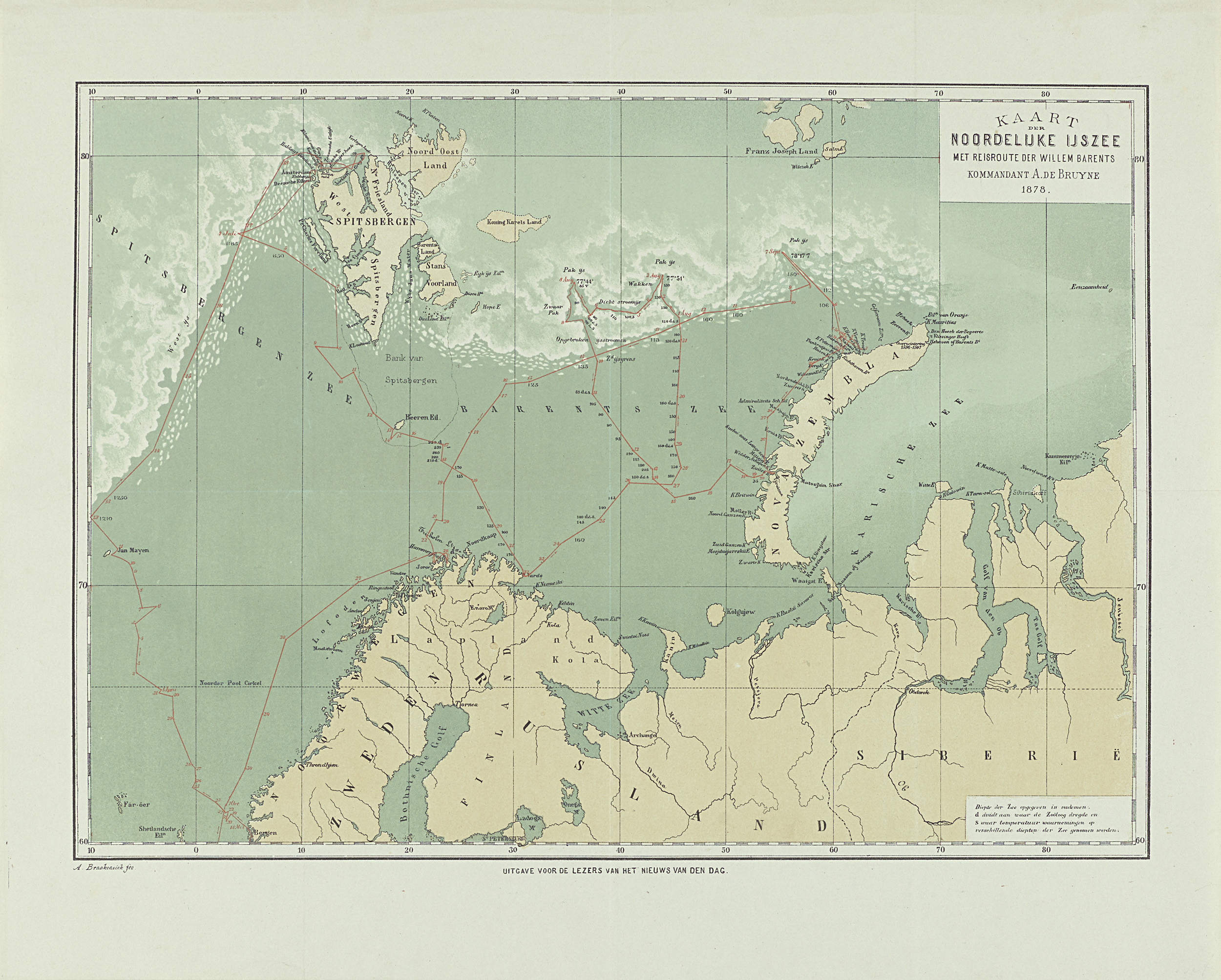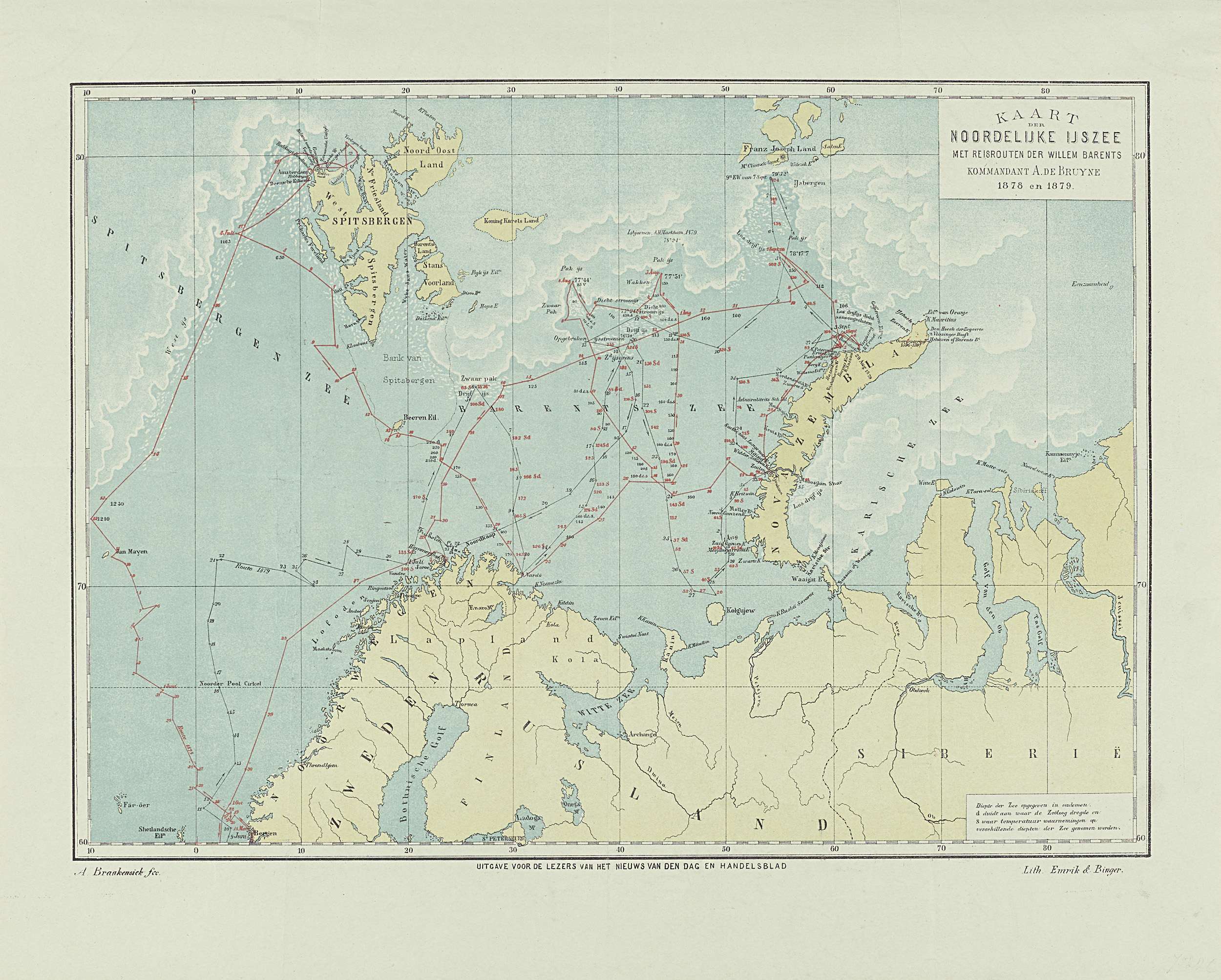 Kaart der Noordelijke IJszee met reisroute der Wille...