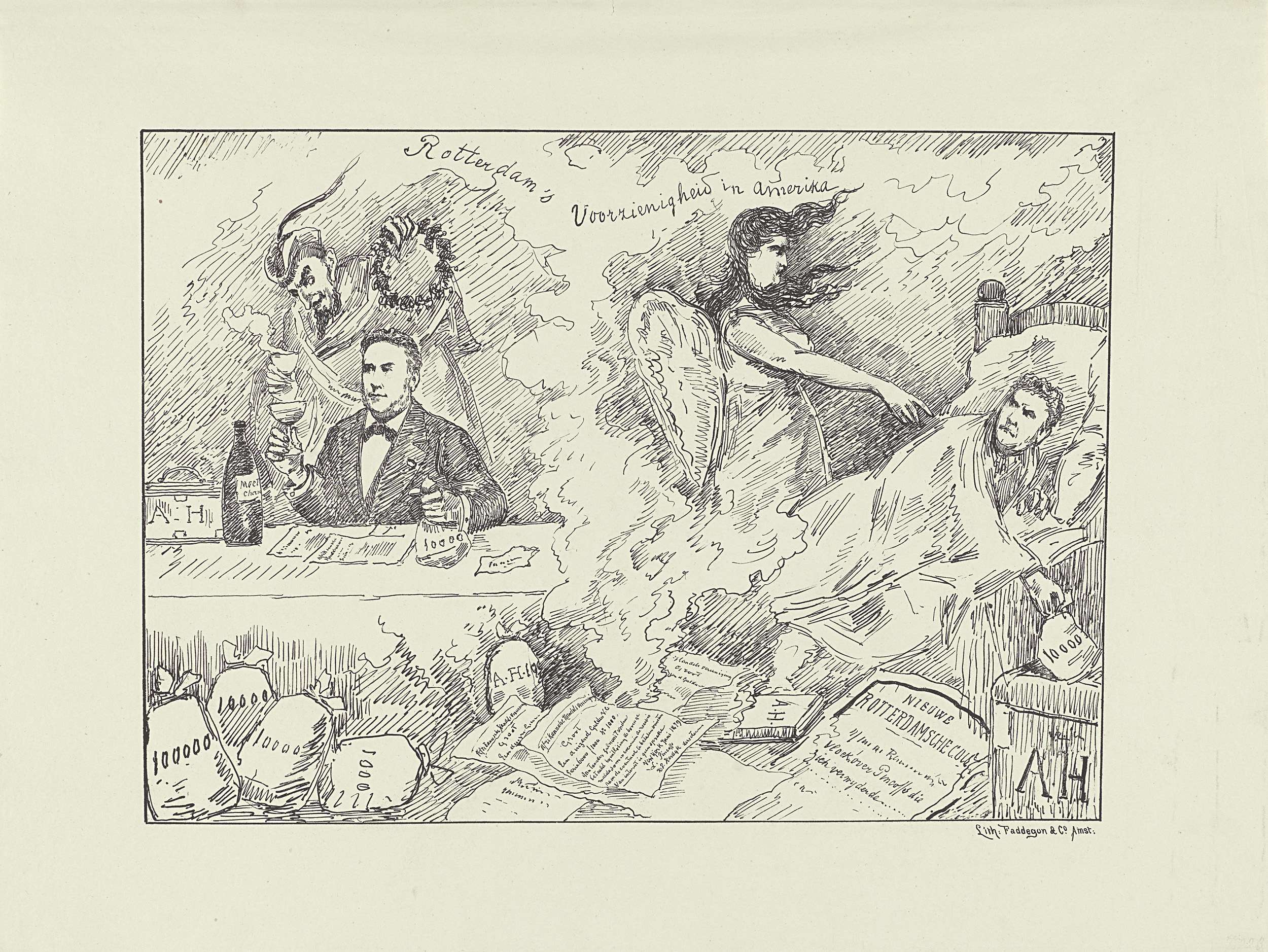 Spotprent op de fraude van Lodewijk Pincoffs te Rott...
