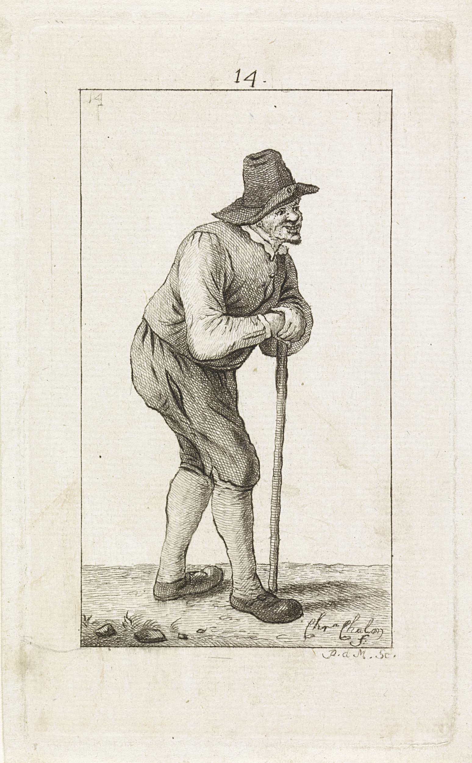 Man leunend op een stok