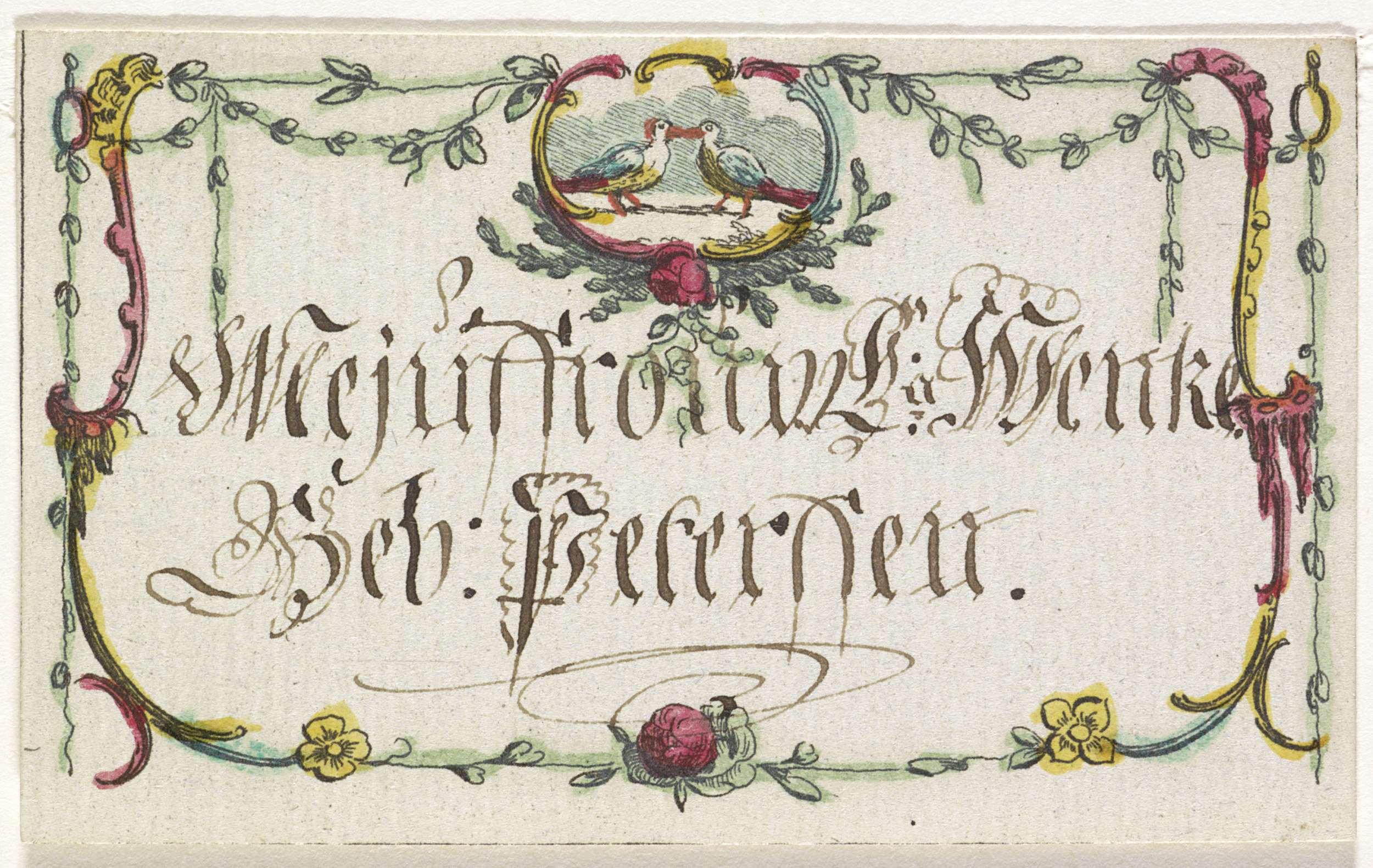 Naamkaart voor de bruidegom, ca. 1760