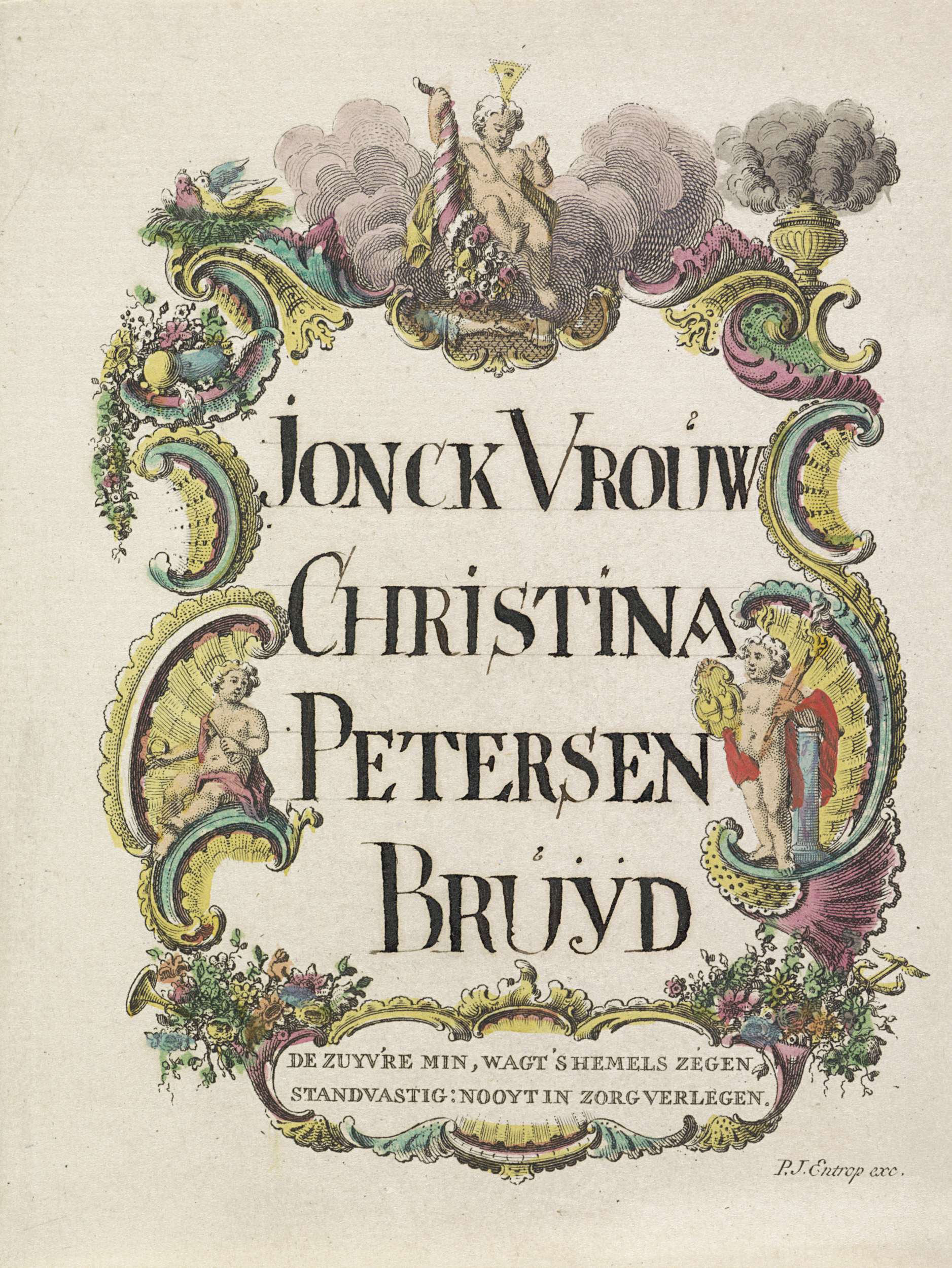 Naamkaart voor de bruid, ca. 1760