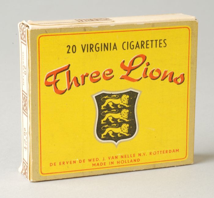 Geel, kartonnen pakje VAN NELLE THREE LIONS, 20 siga...