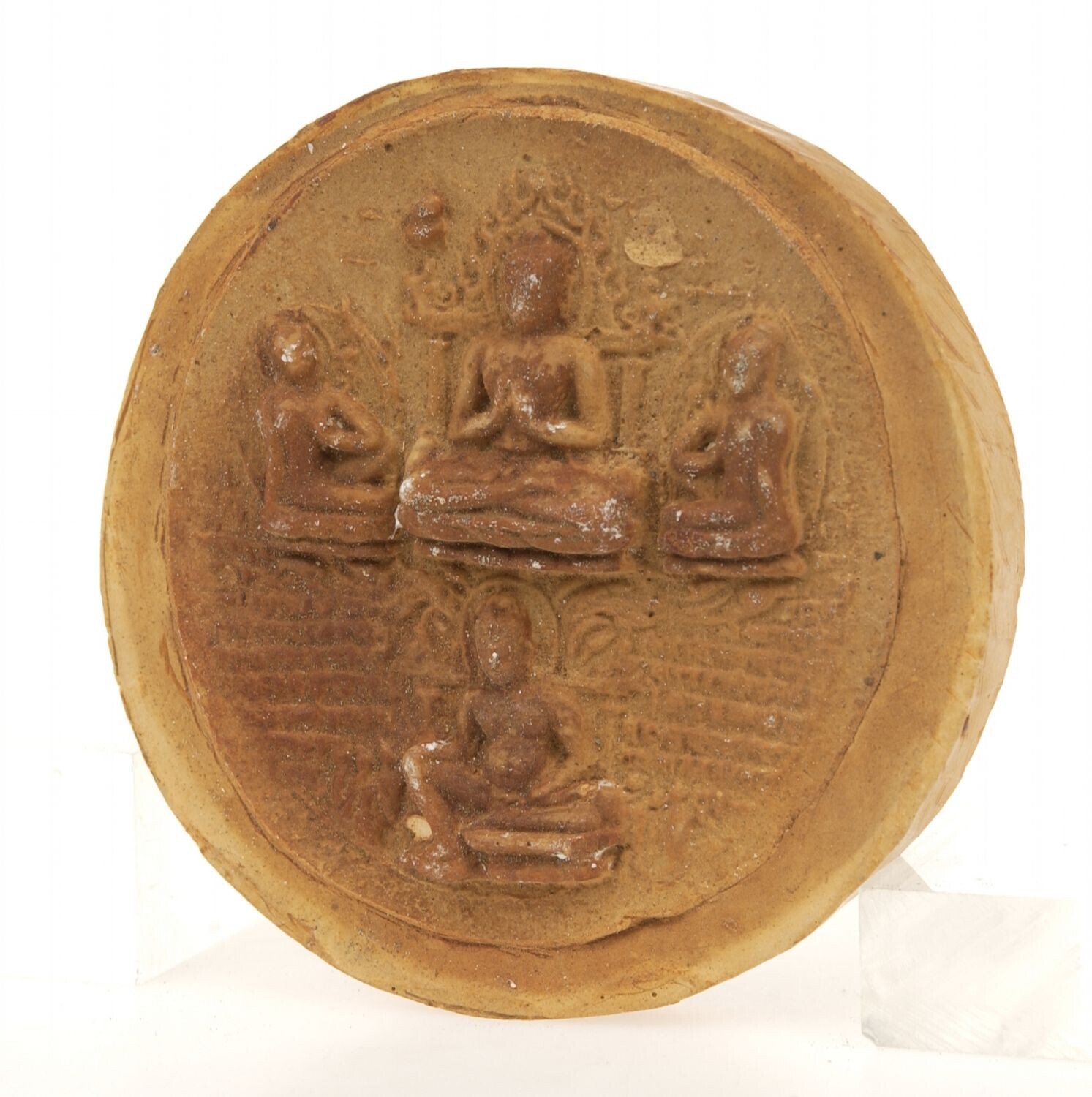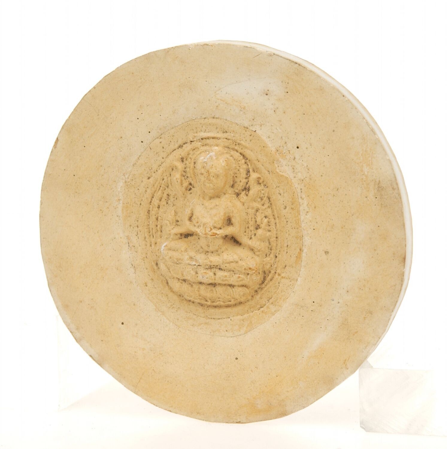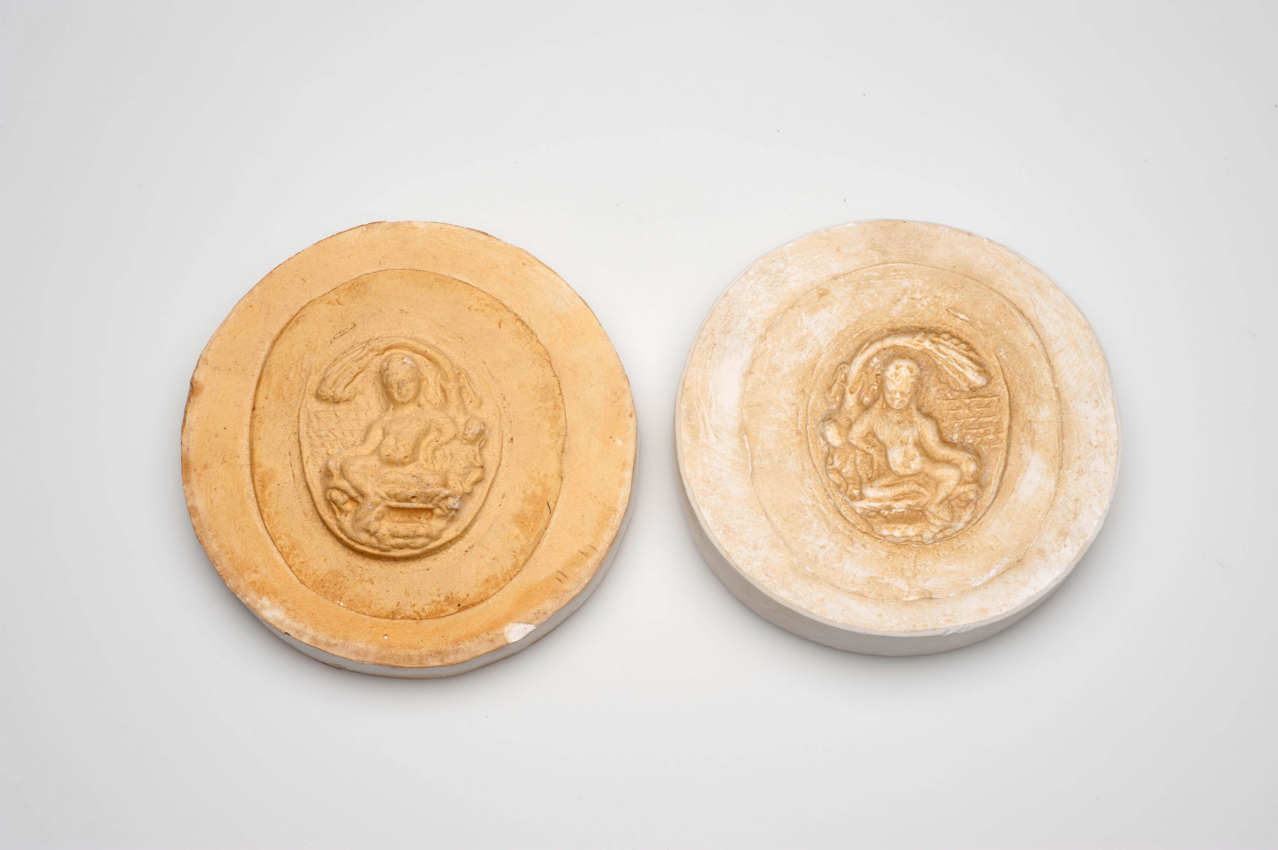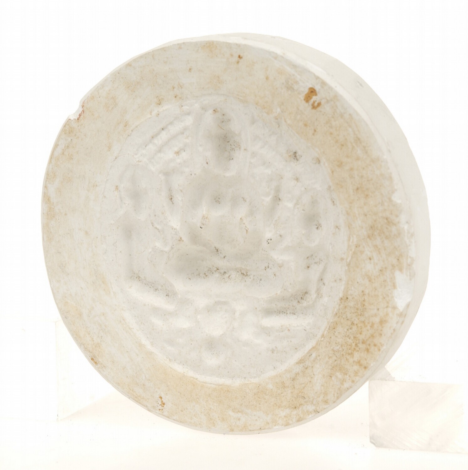 Gipsafgietsel votieftablet met twee armige figuur