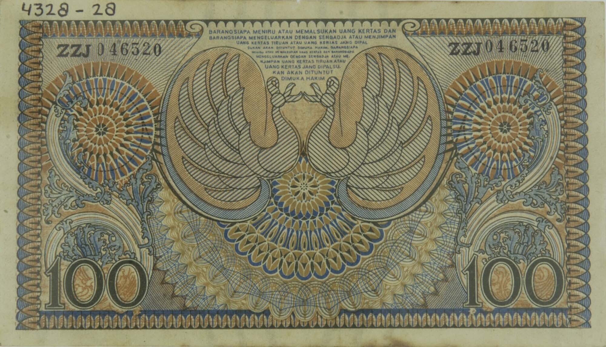 Een bankbiljet van honderd rupiah uit de Japanse tijd