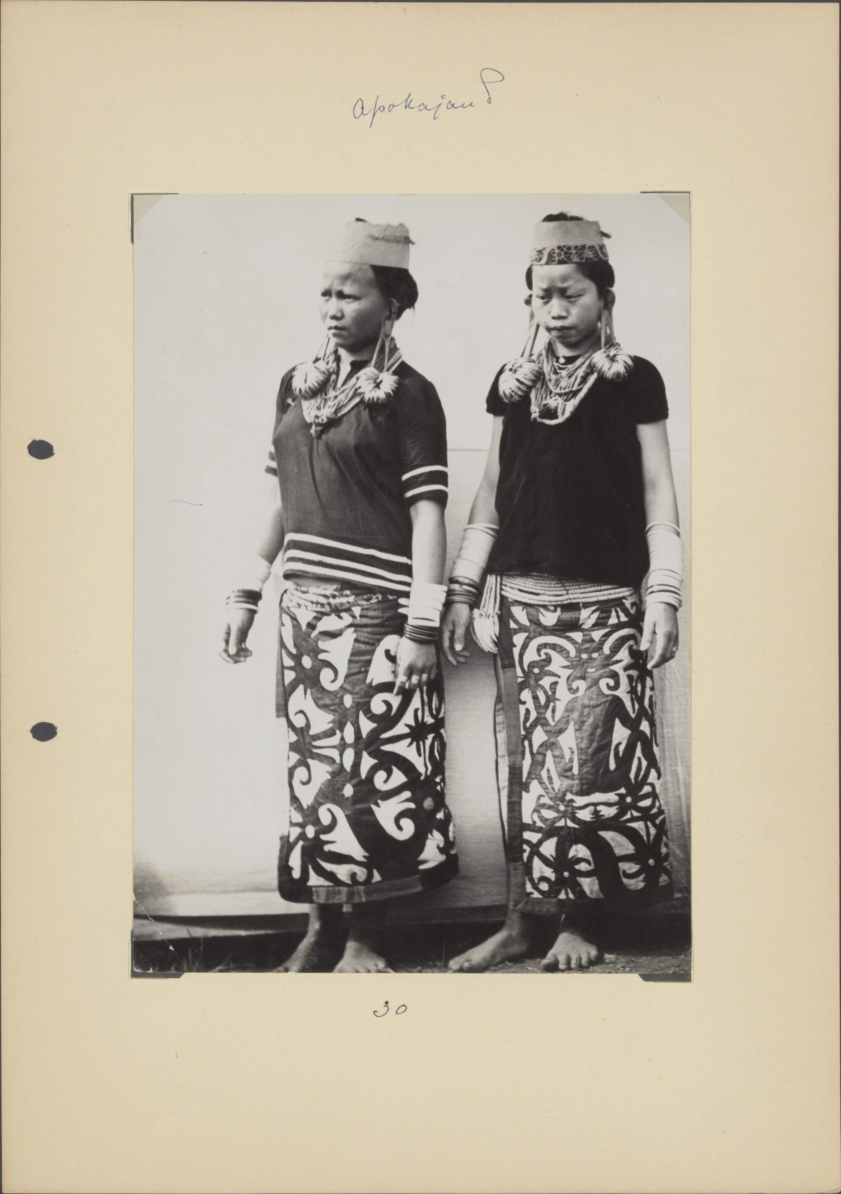 Twee jonge vrouwen in traditionele kleding, van acht...
