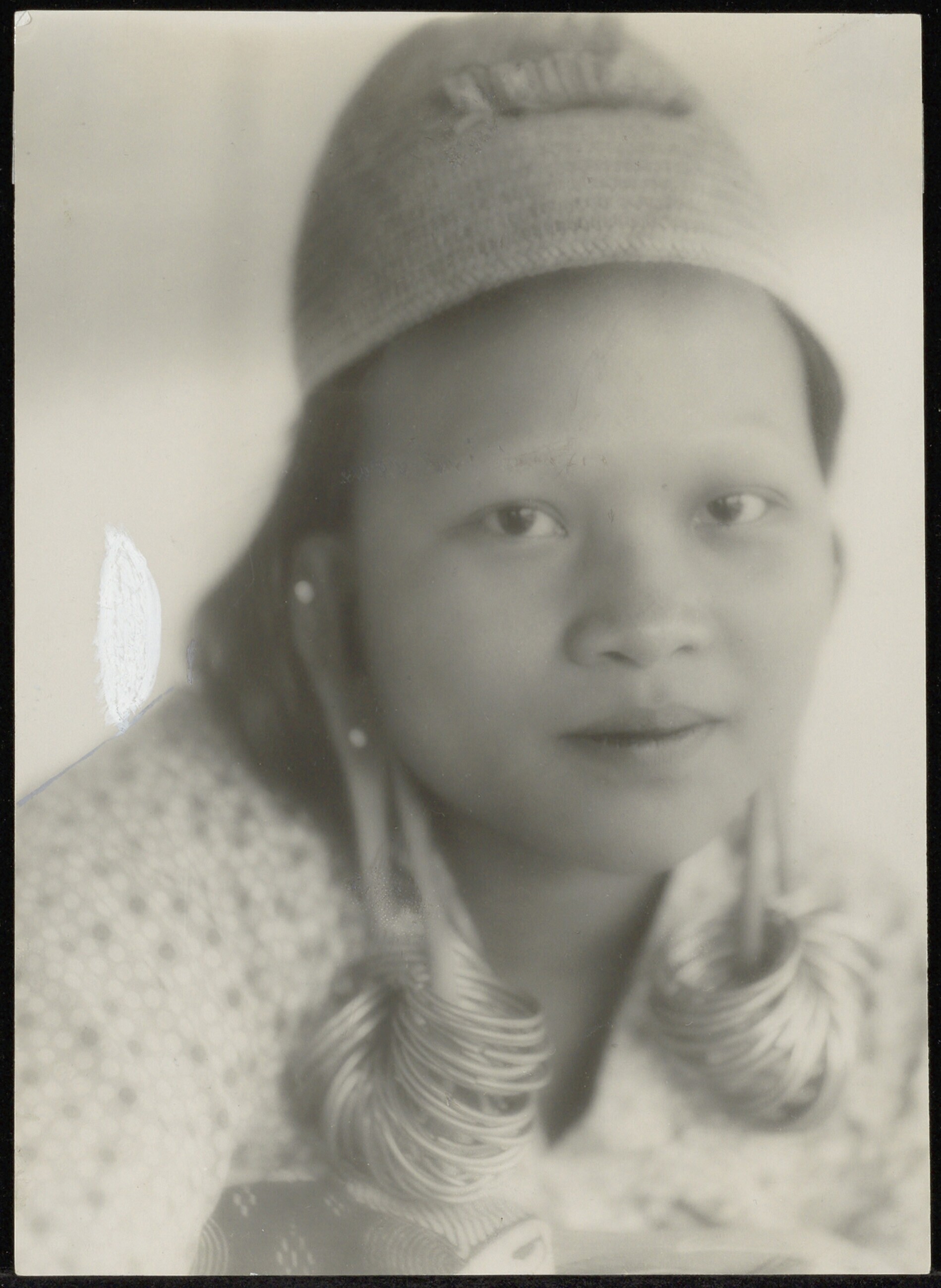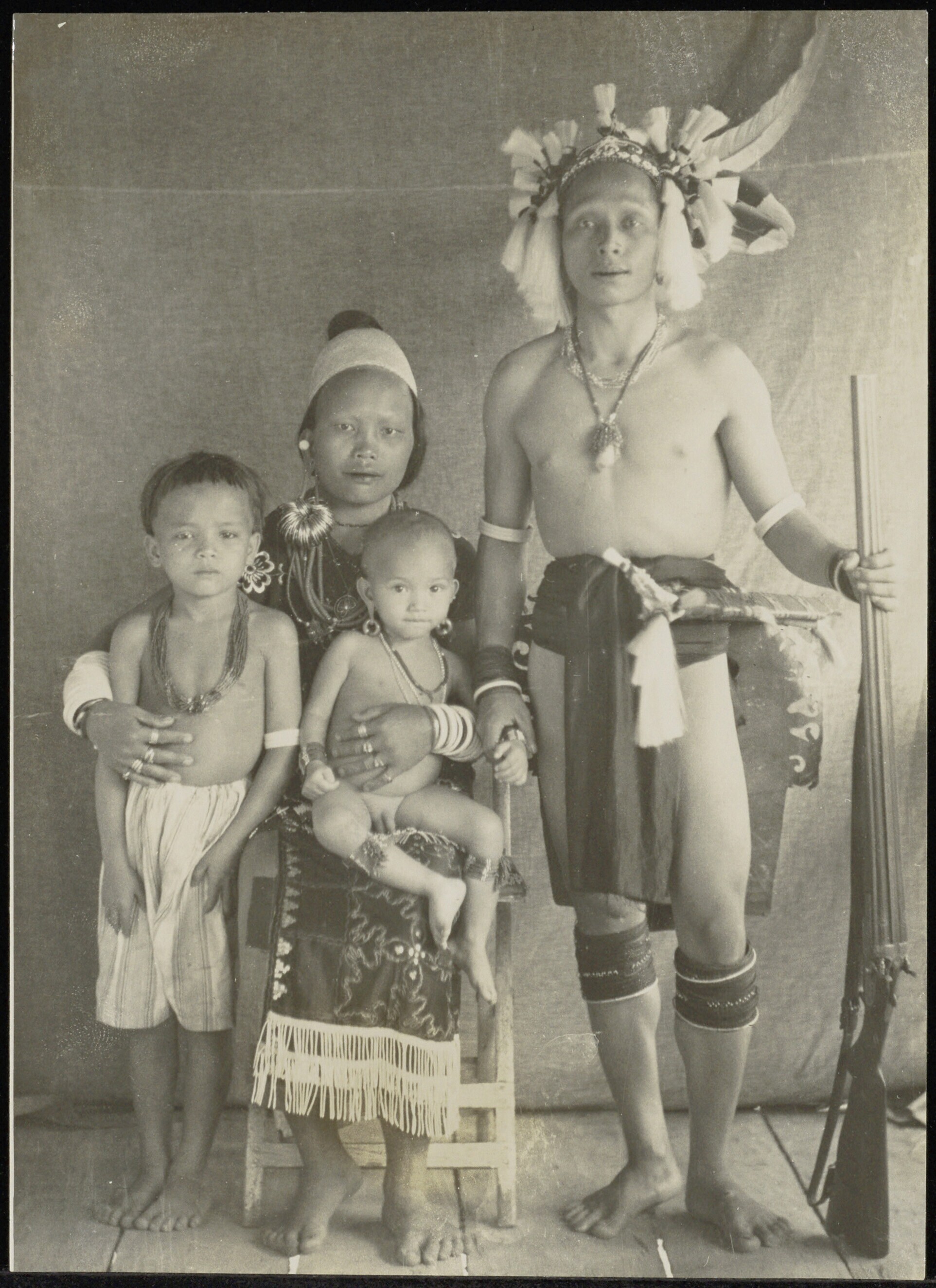 Portret van een Dayak man, oorhanger gemaakt van de ...