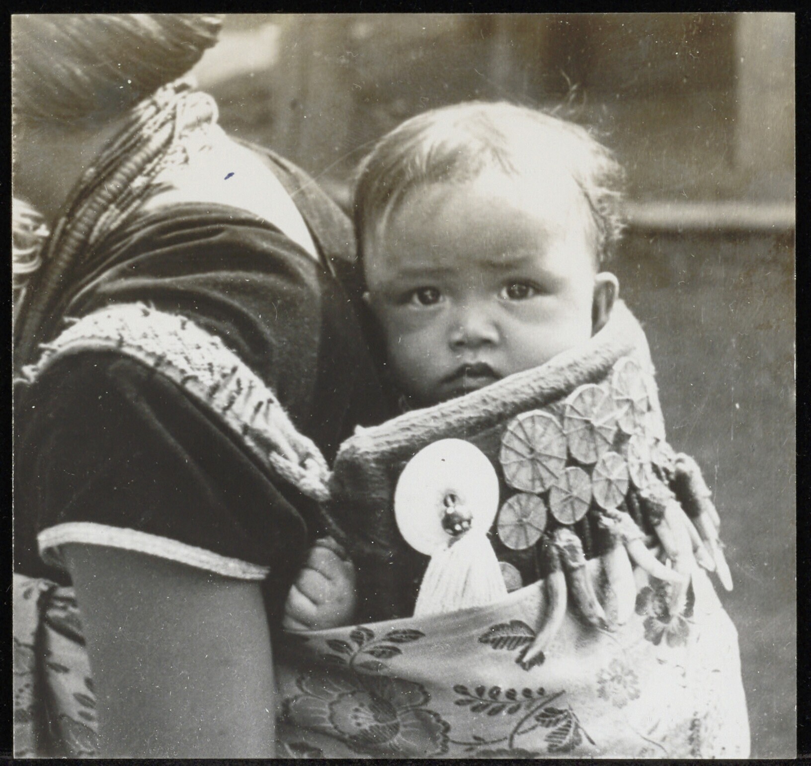 Draagmand versierd met magisch krachtige voorwerpen ...