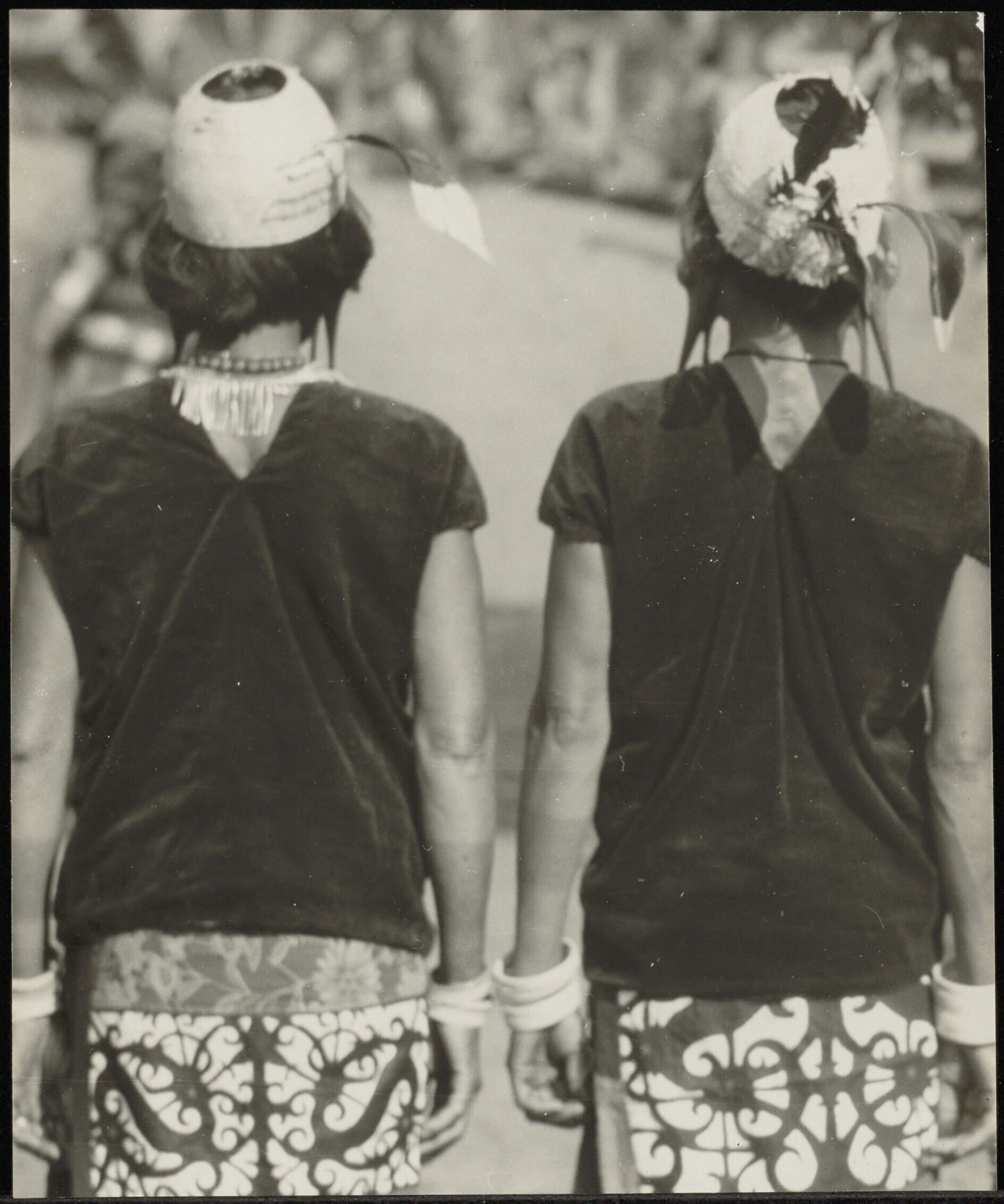 Twee vrouwen in vrijwel identieke traditionele kleding