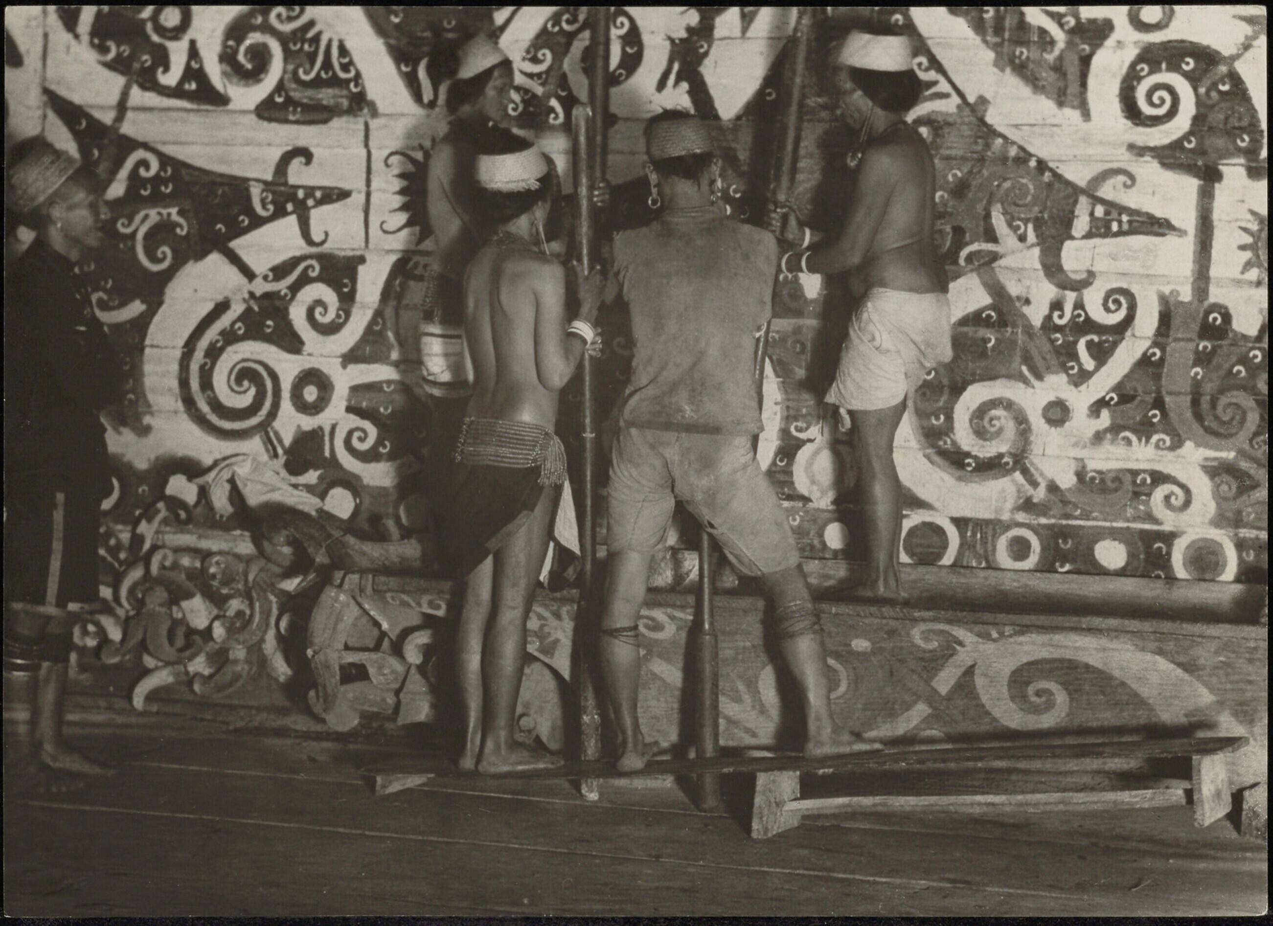 Apo-Kayan Dayak krijger met drie vrouwen