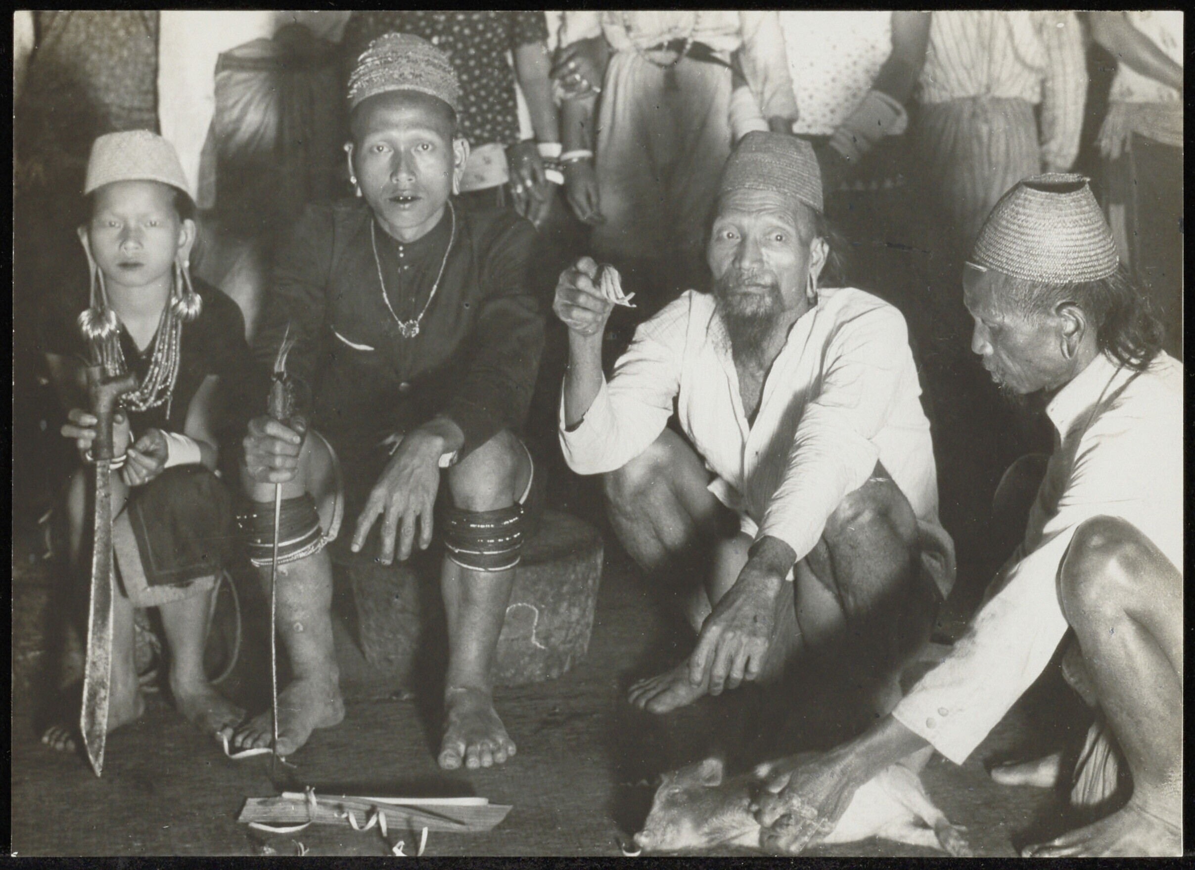 Opstelling van vier Apo-Kayan Dayak mannen voor een ...