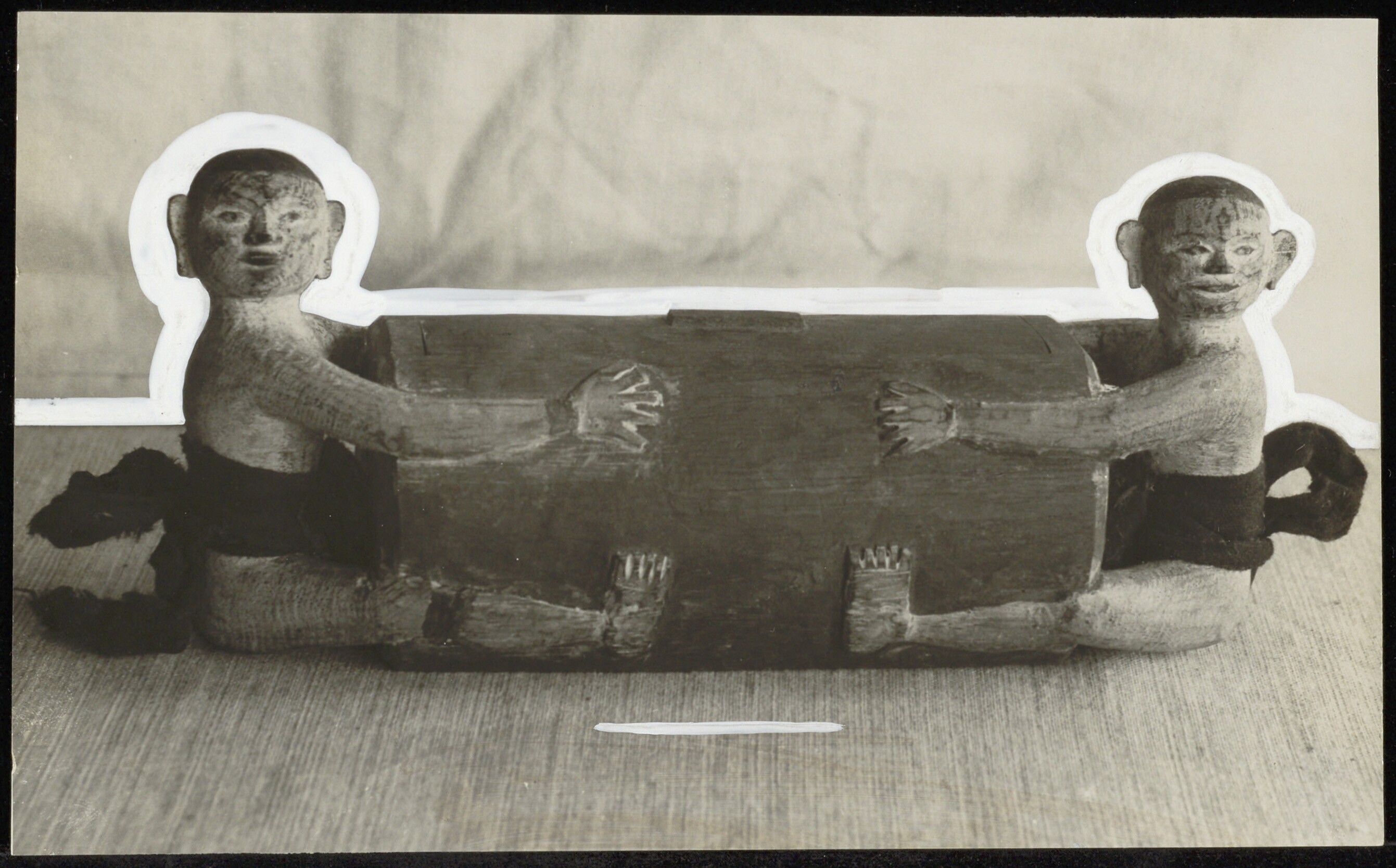 Houten cylindervormig voorwerp vastgehouden door aan...