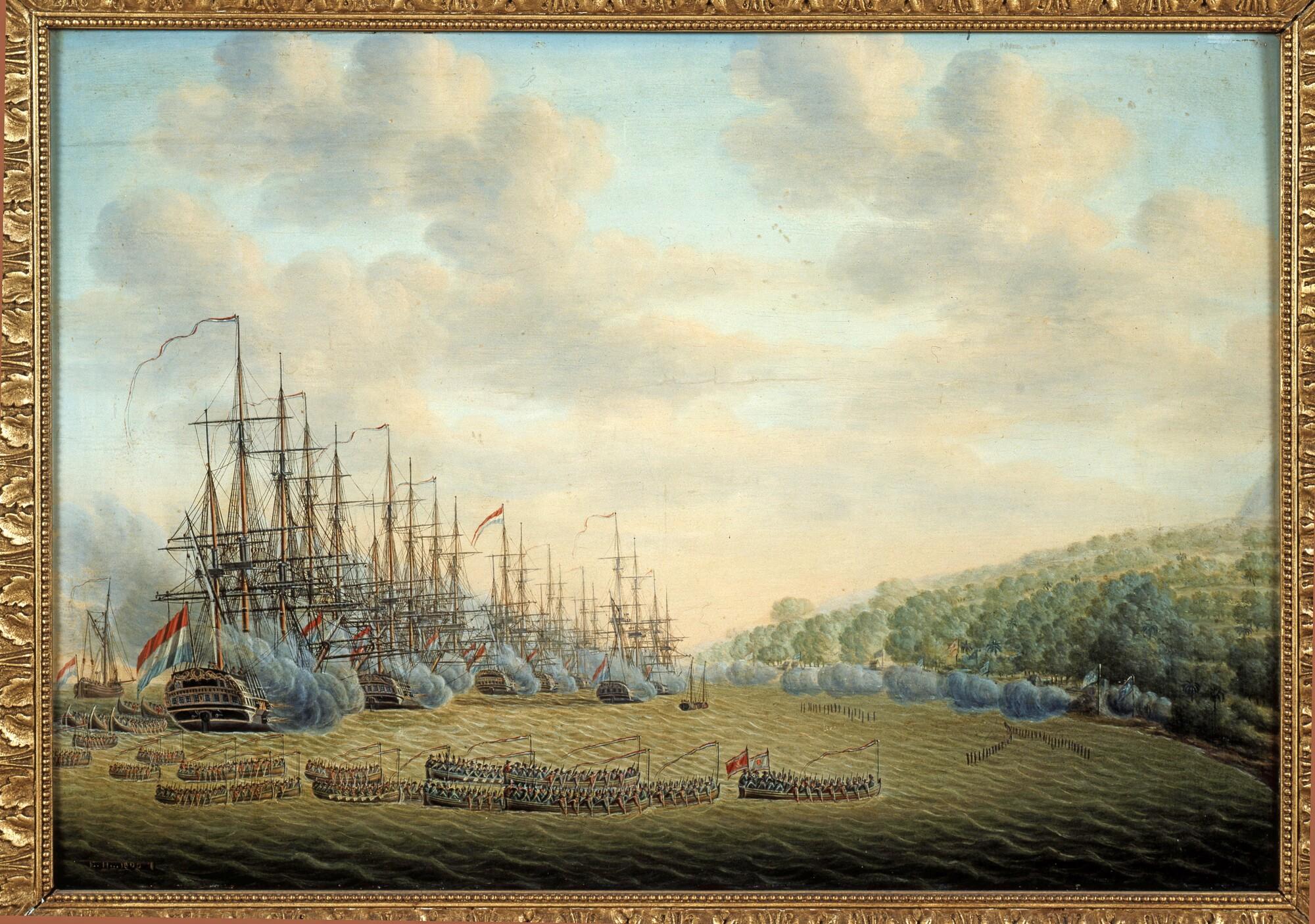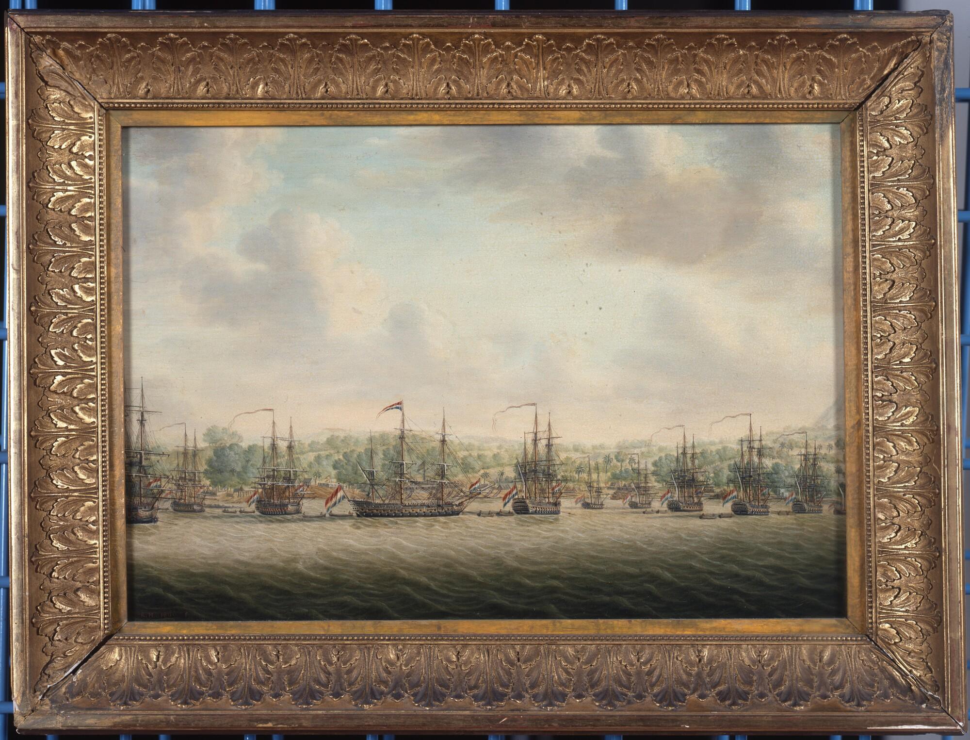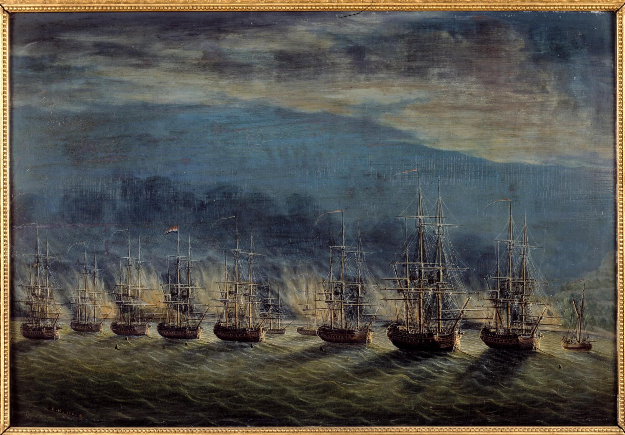 Twee nederlandse oorlogsschepen op de rede van Algiers