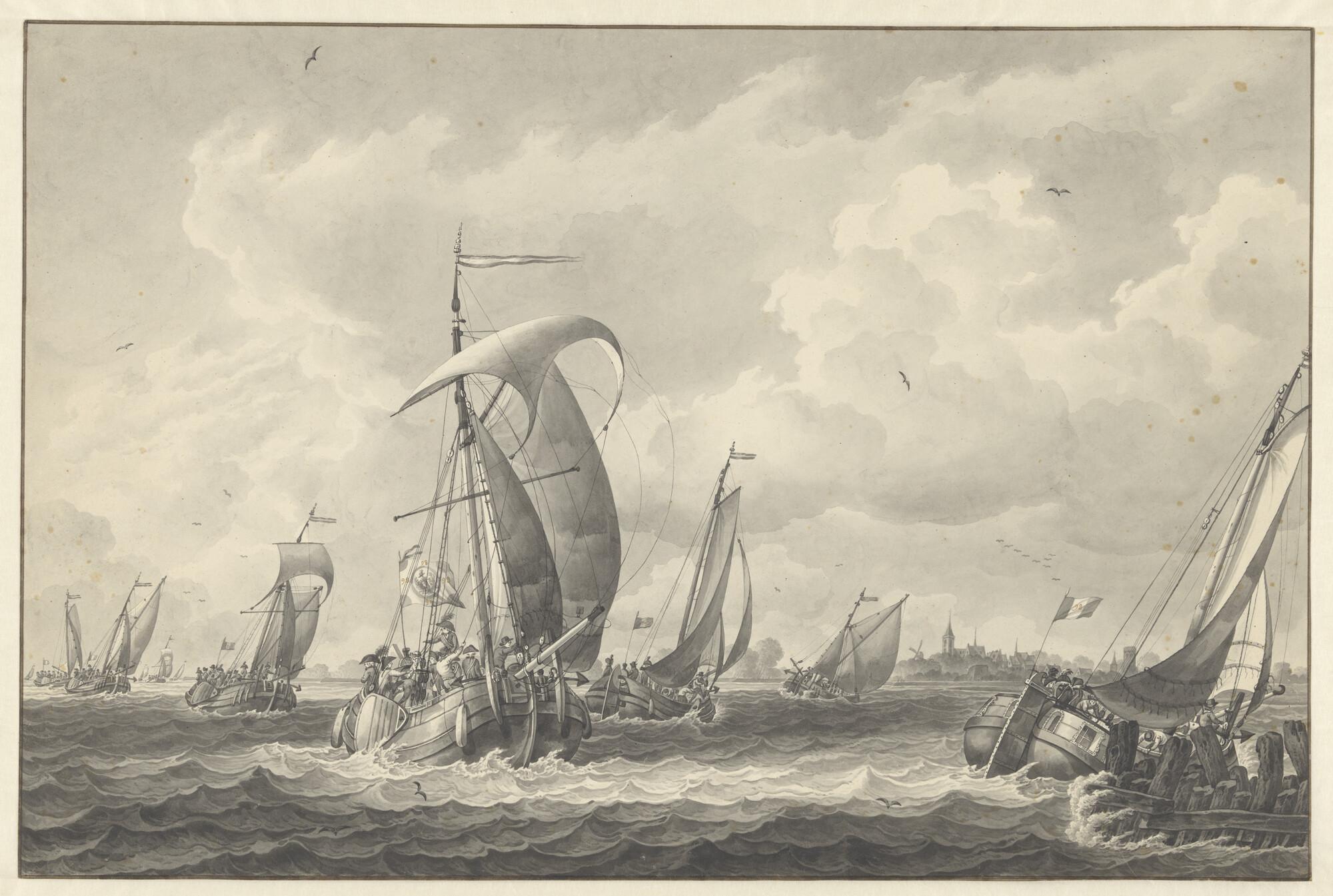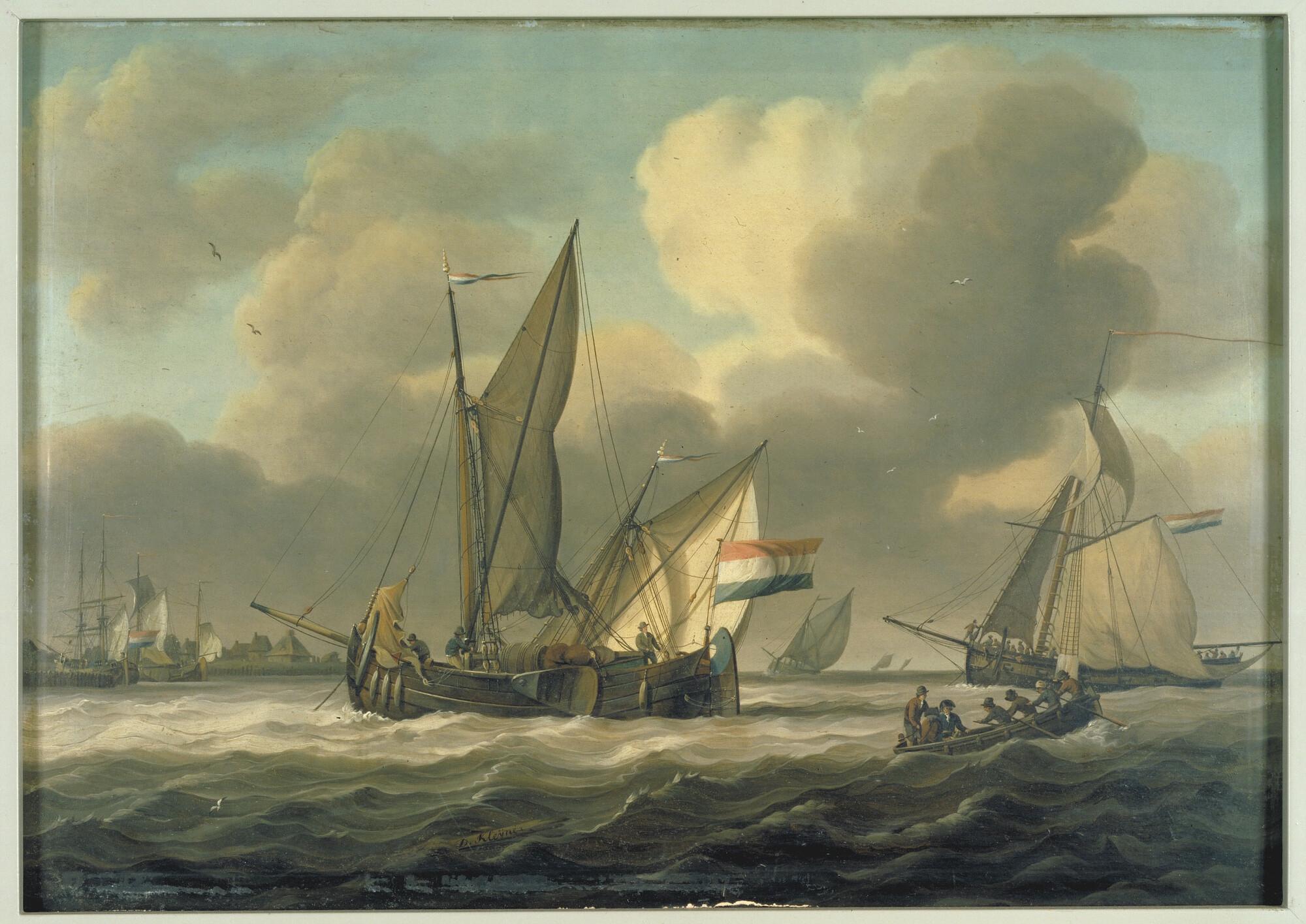 Een kanonneerbrik onder zeil ter hoogte van Vlissingen
