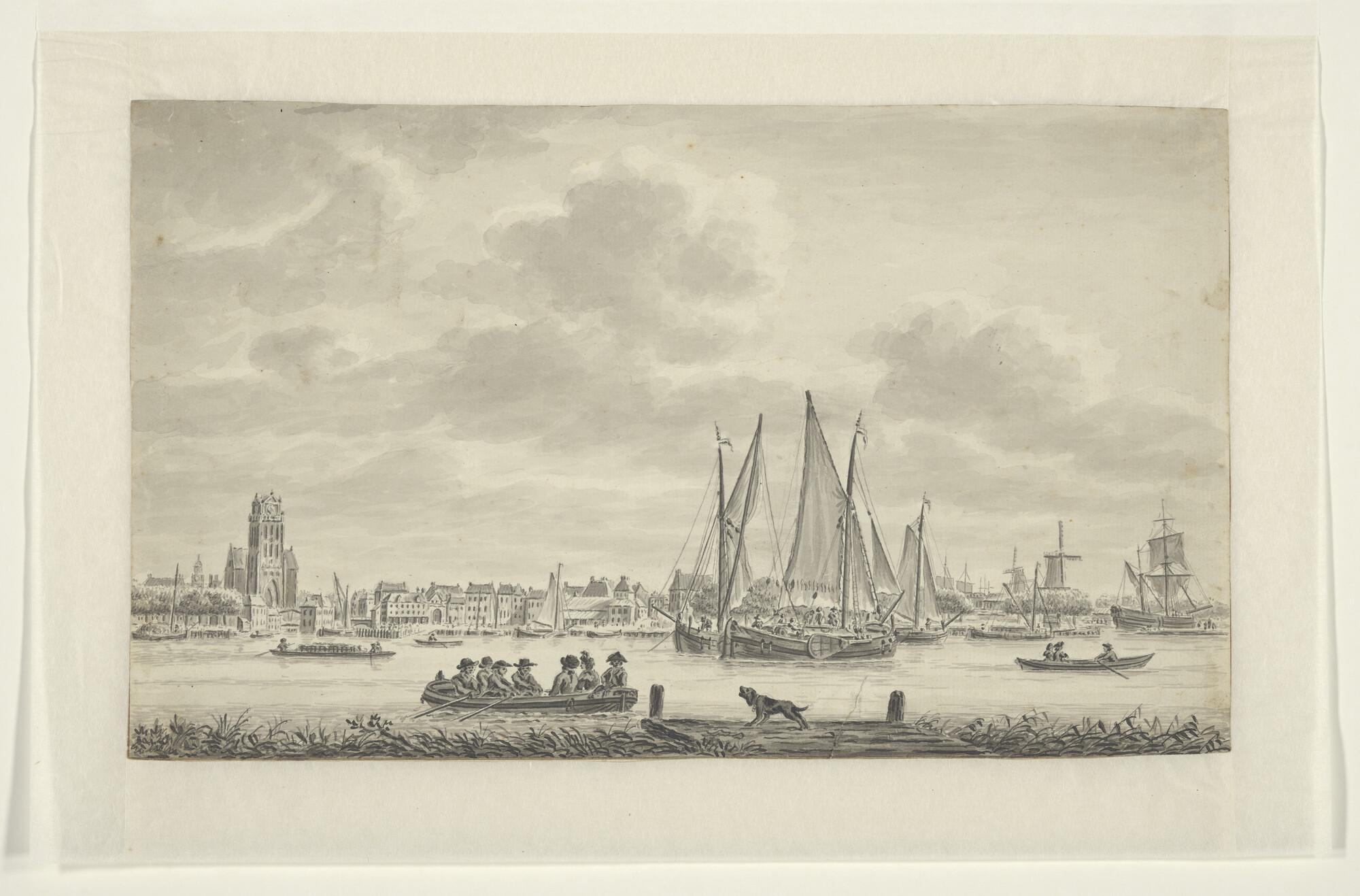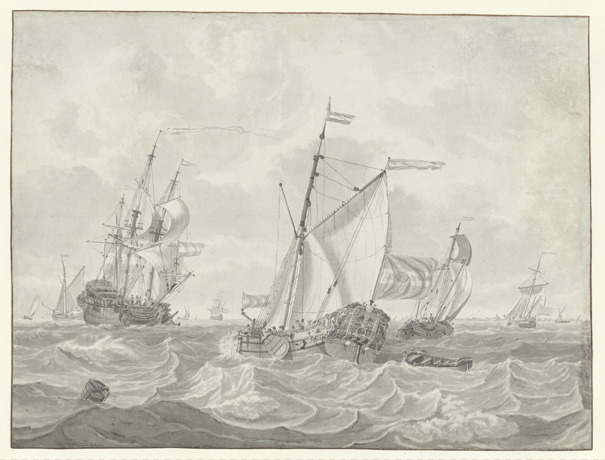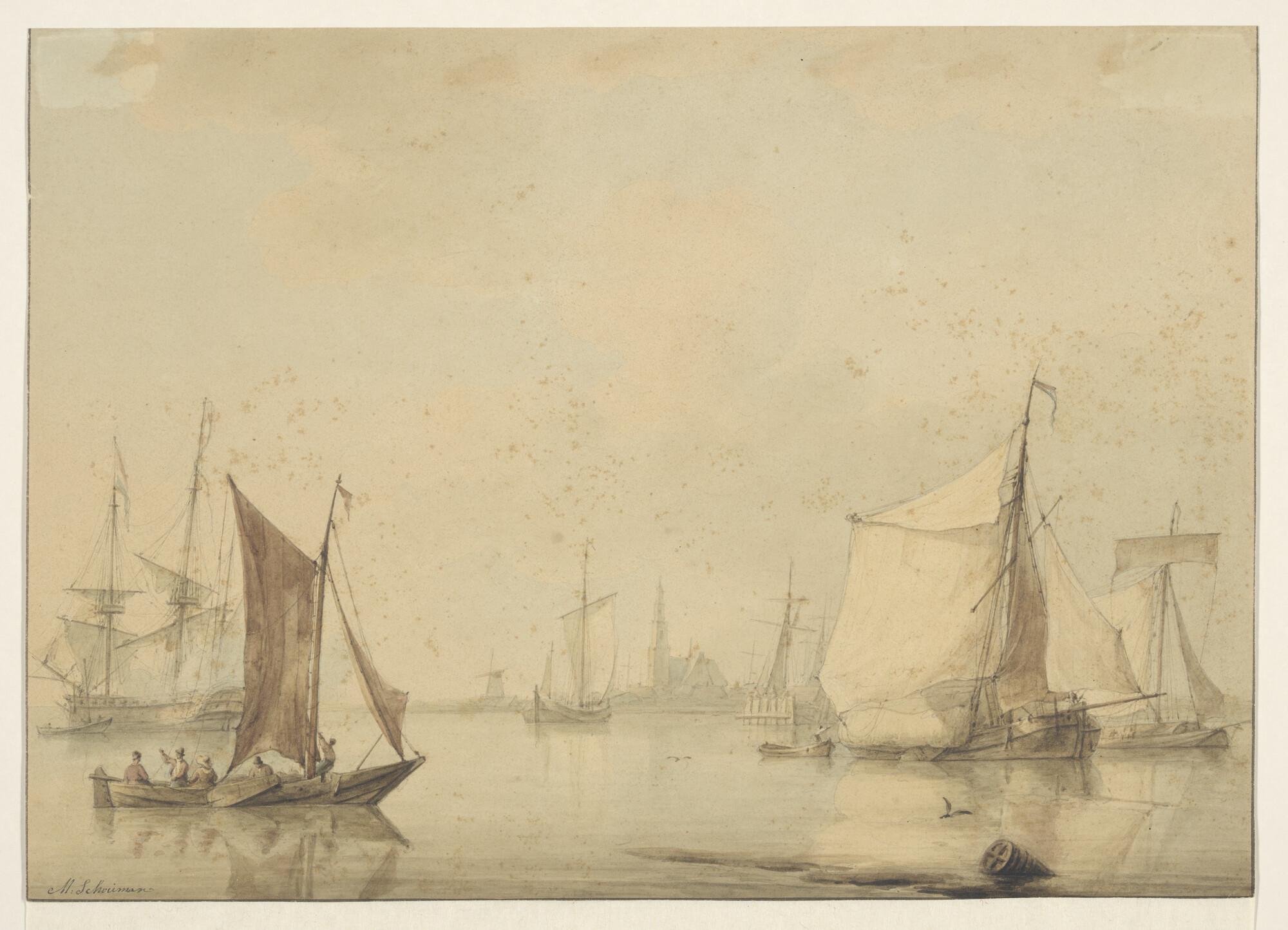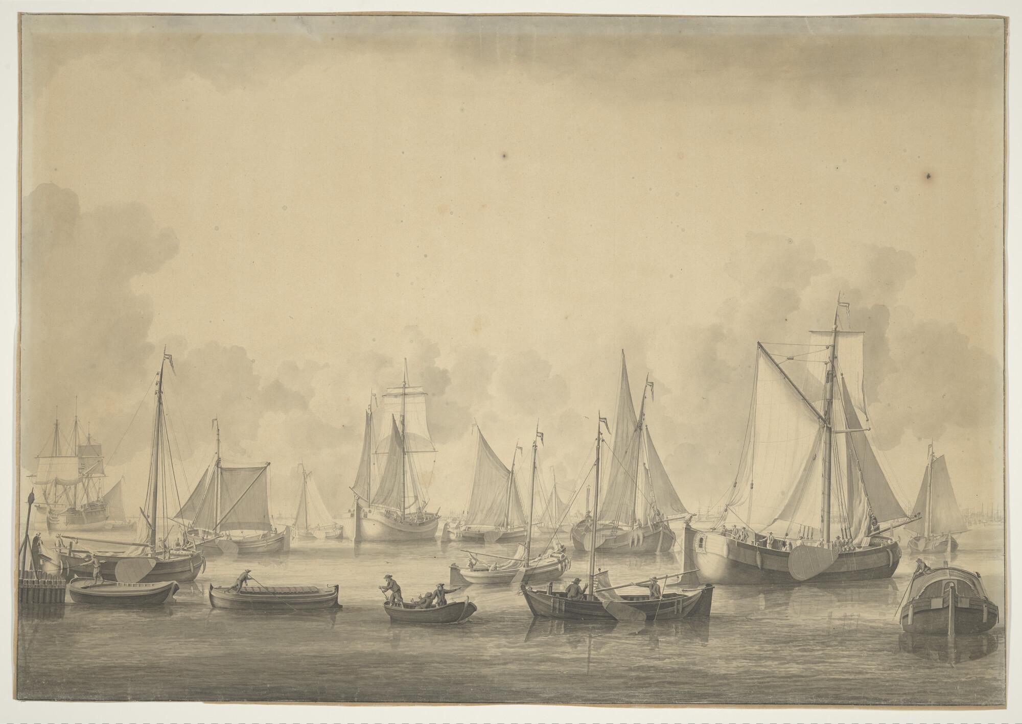De rede van Vlissingen met een tjalk en oorlogsschip