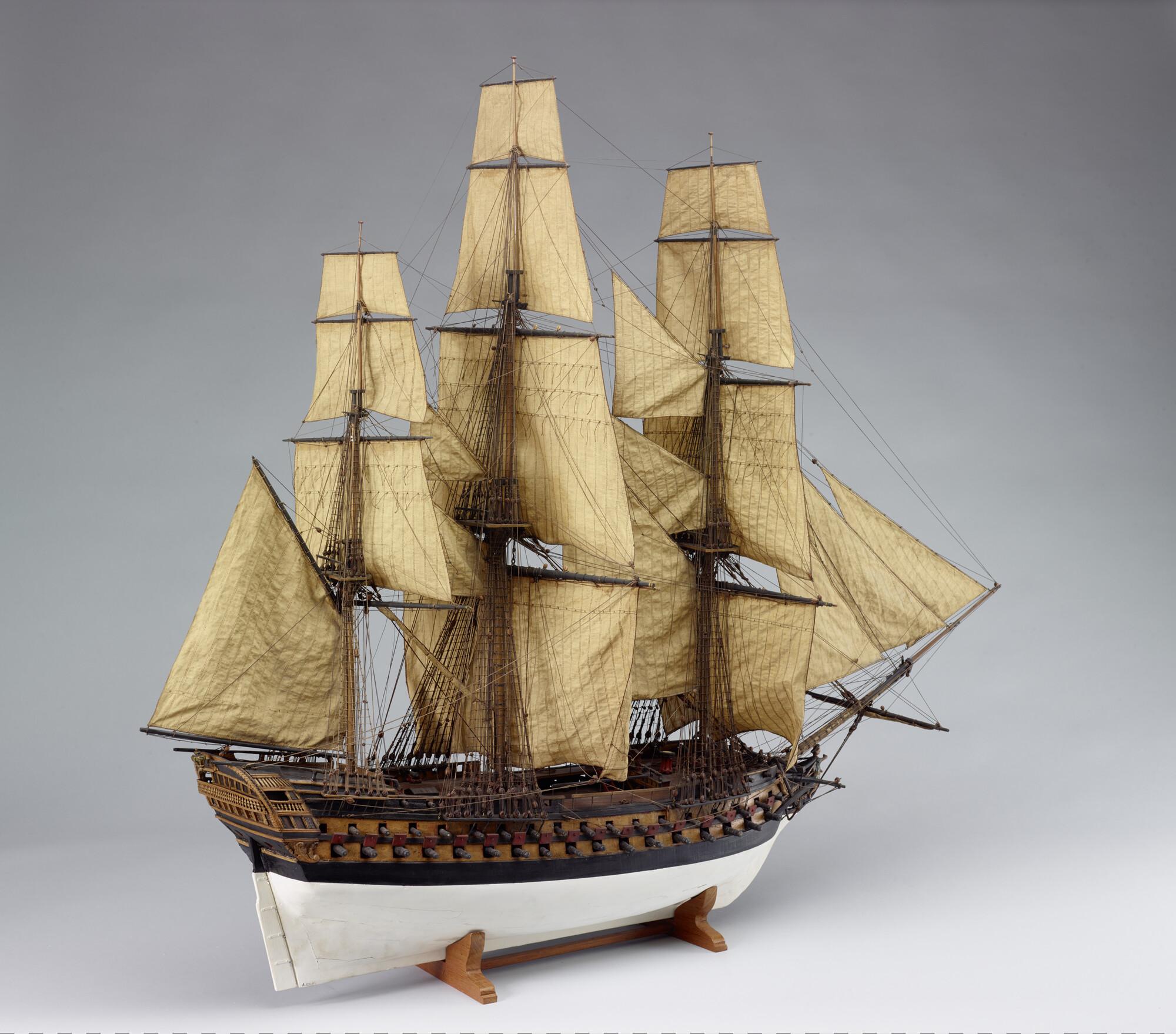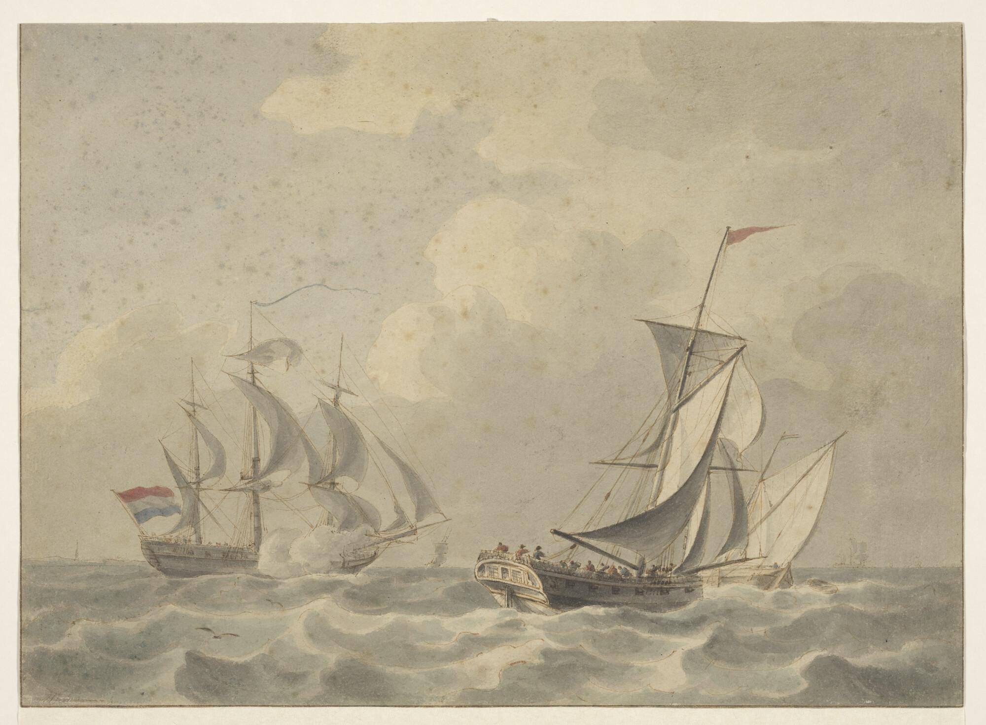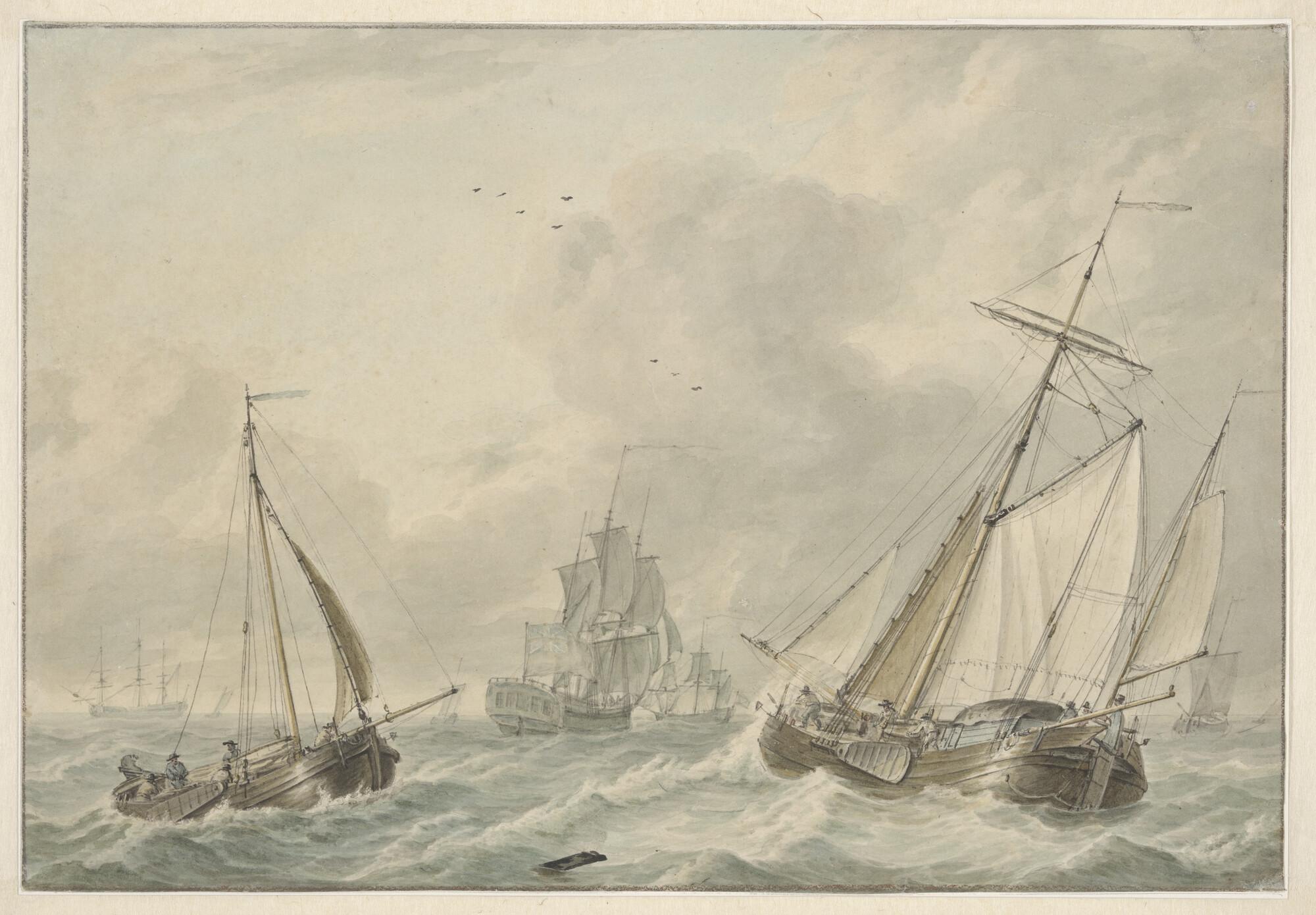 Een oorlogskotter en oorlogskorvet onder zeil in ope...