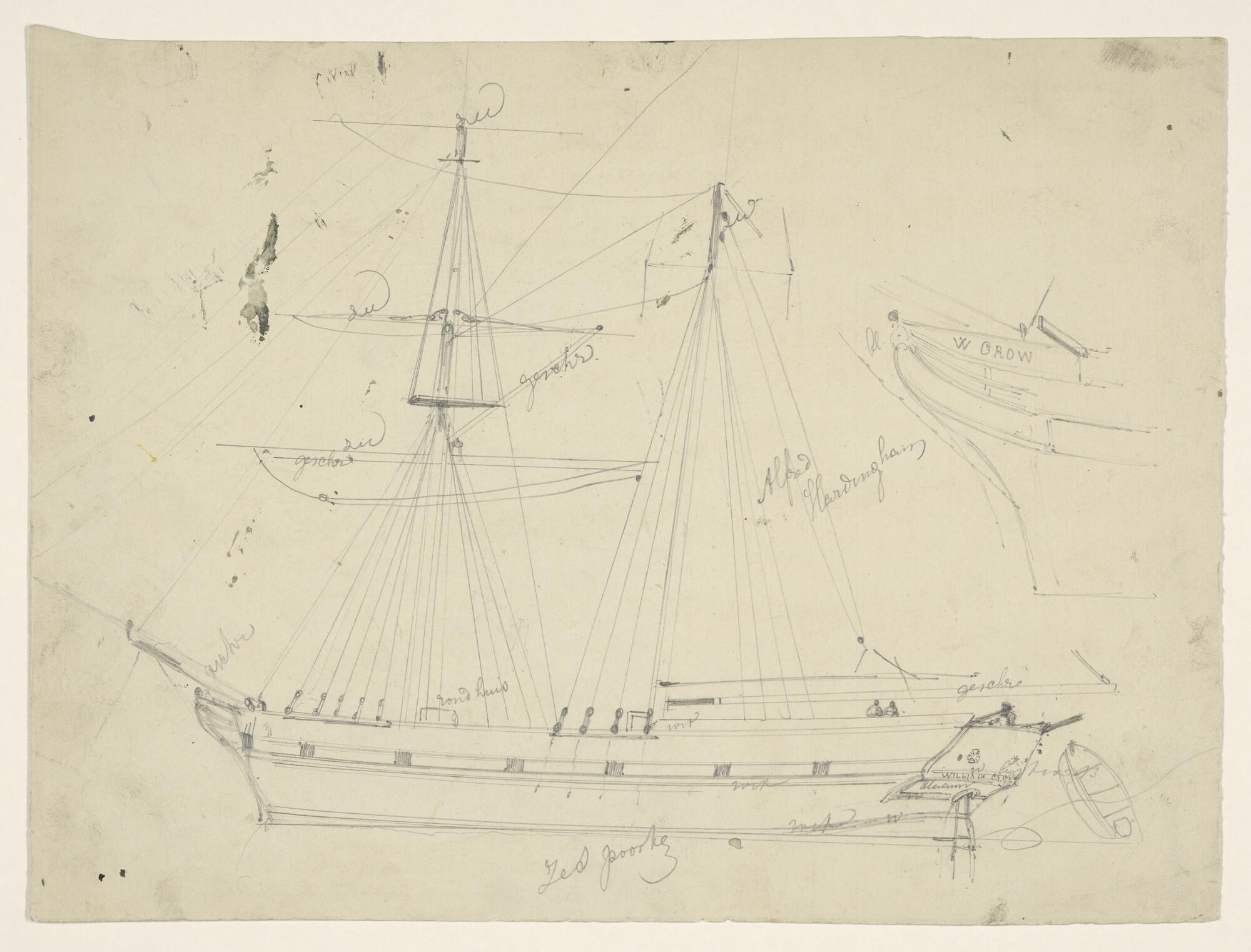 Schets van het Engelse schoenerbrikschip William Crow