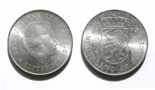 Zilveren Nederlandse betaalmunt, 10 Gulden, 1973