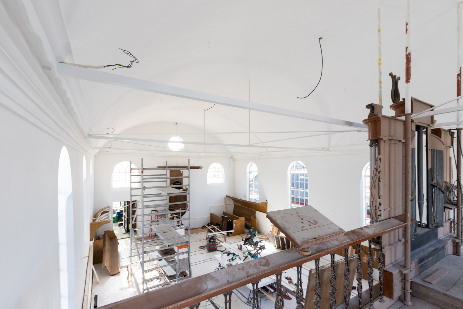 Interieur schip vanaf balkon
