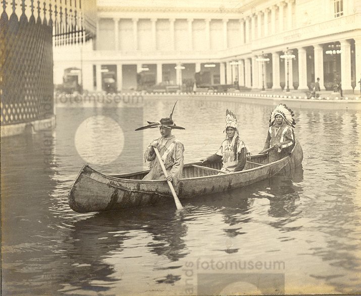 Chippewa in kano op de Thames, tijdens mensenshow in...