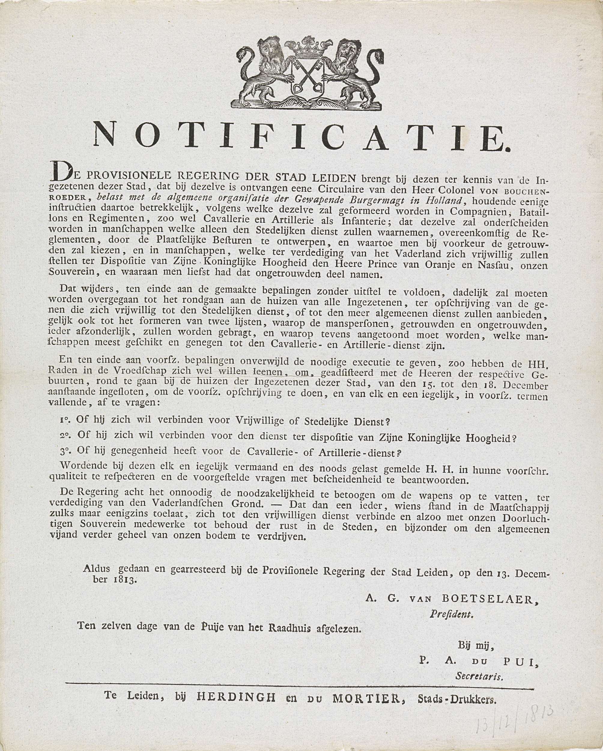 Publicatie over de inschrijving bij de Landmilitie, ...