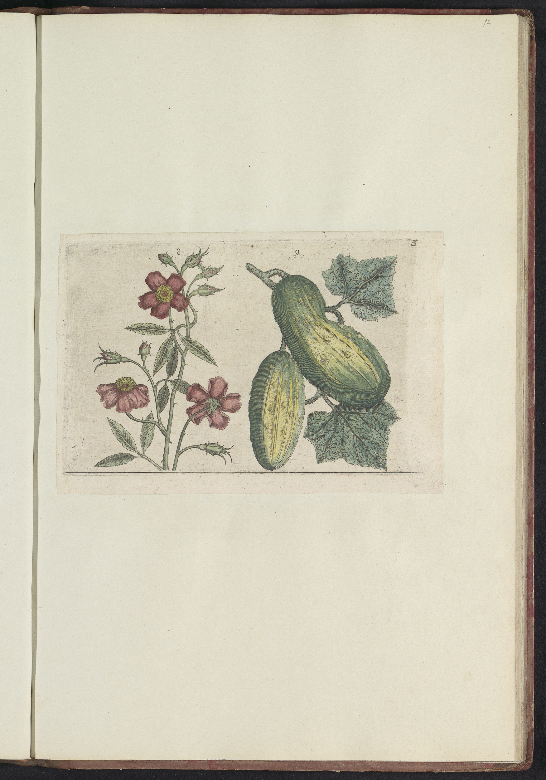 Muskusroos (Rosa moschata) en komkommer (Cucumis sat...
