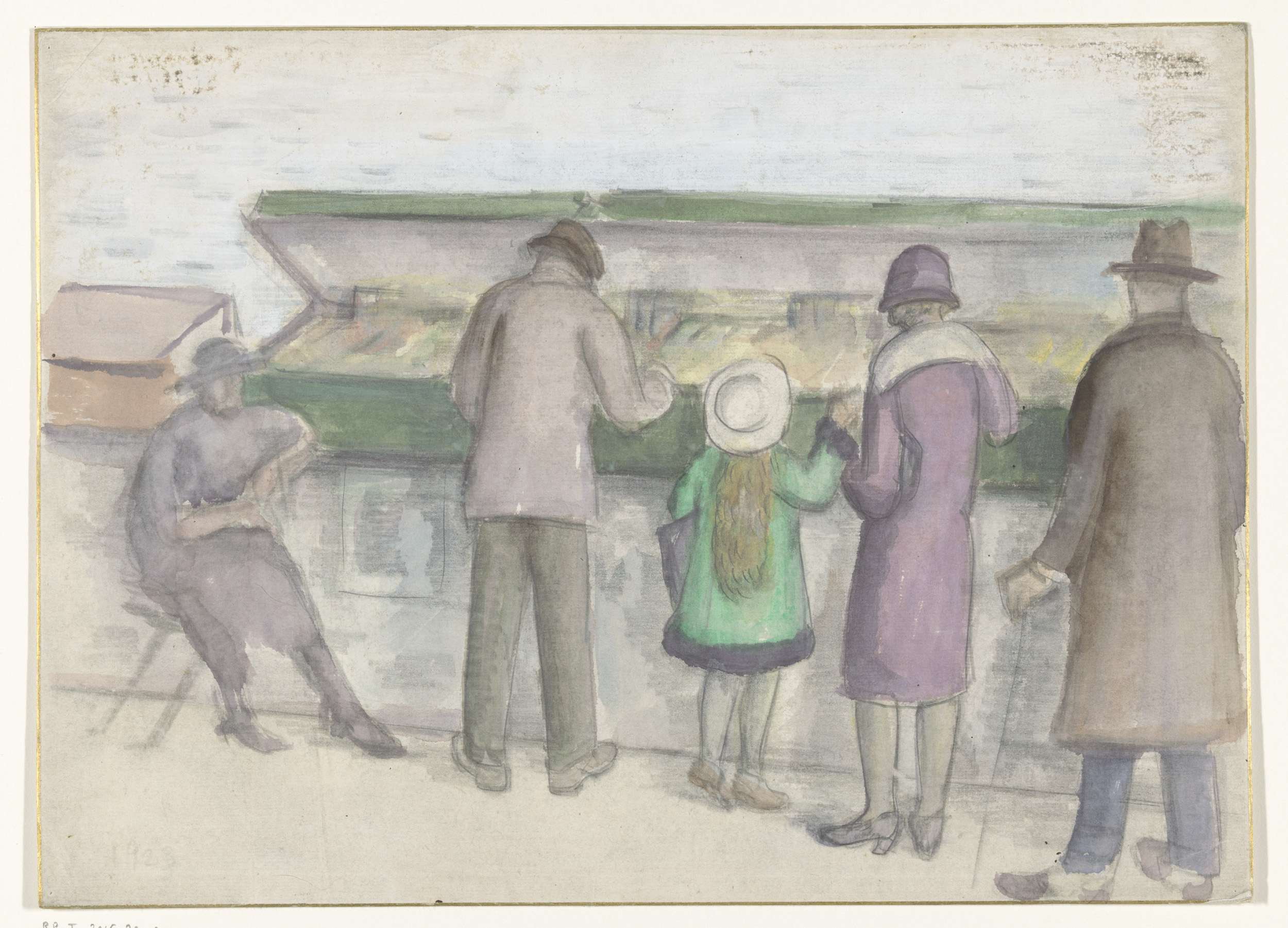 Personen voor een boekenkraam op een kade