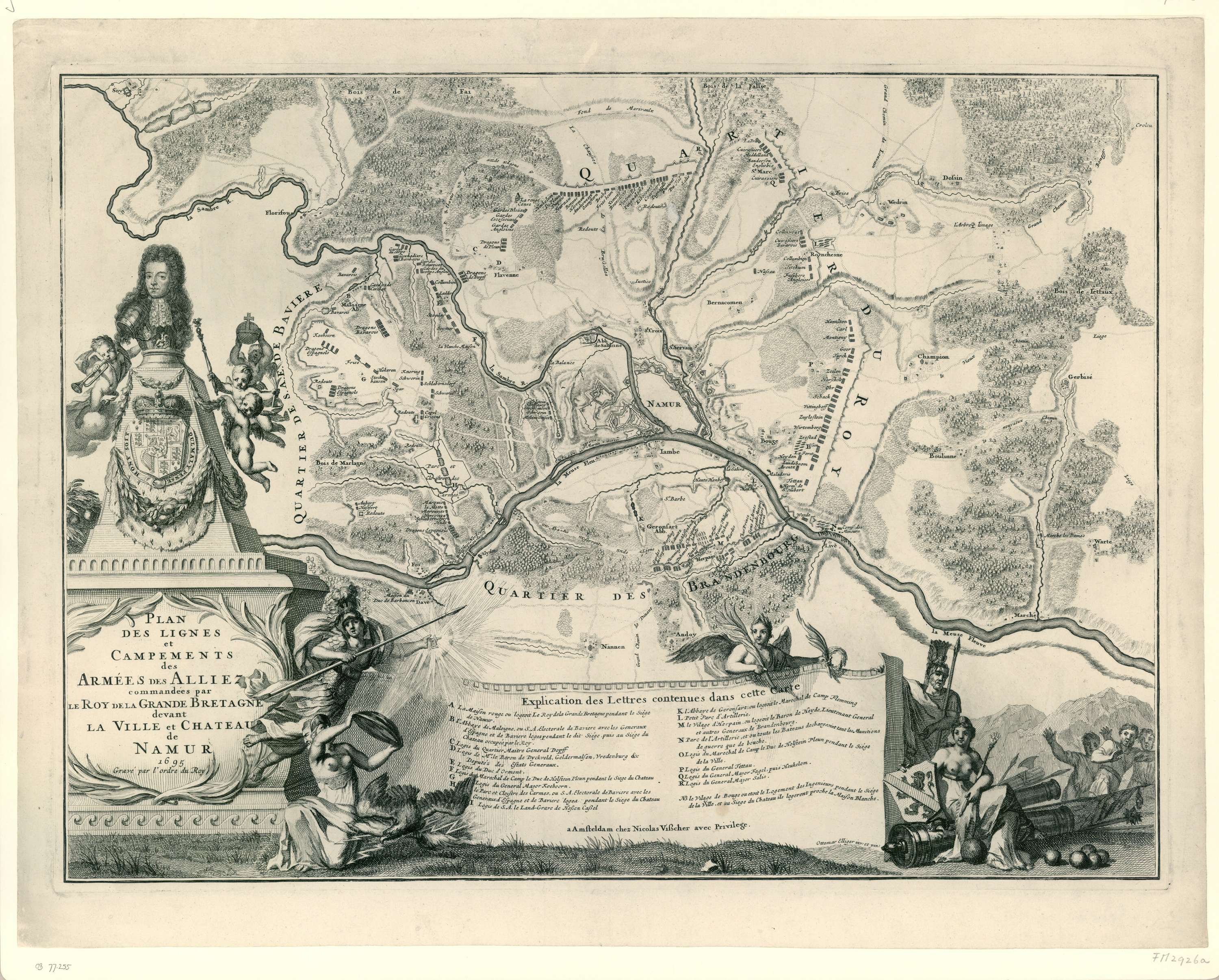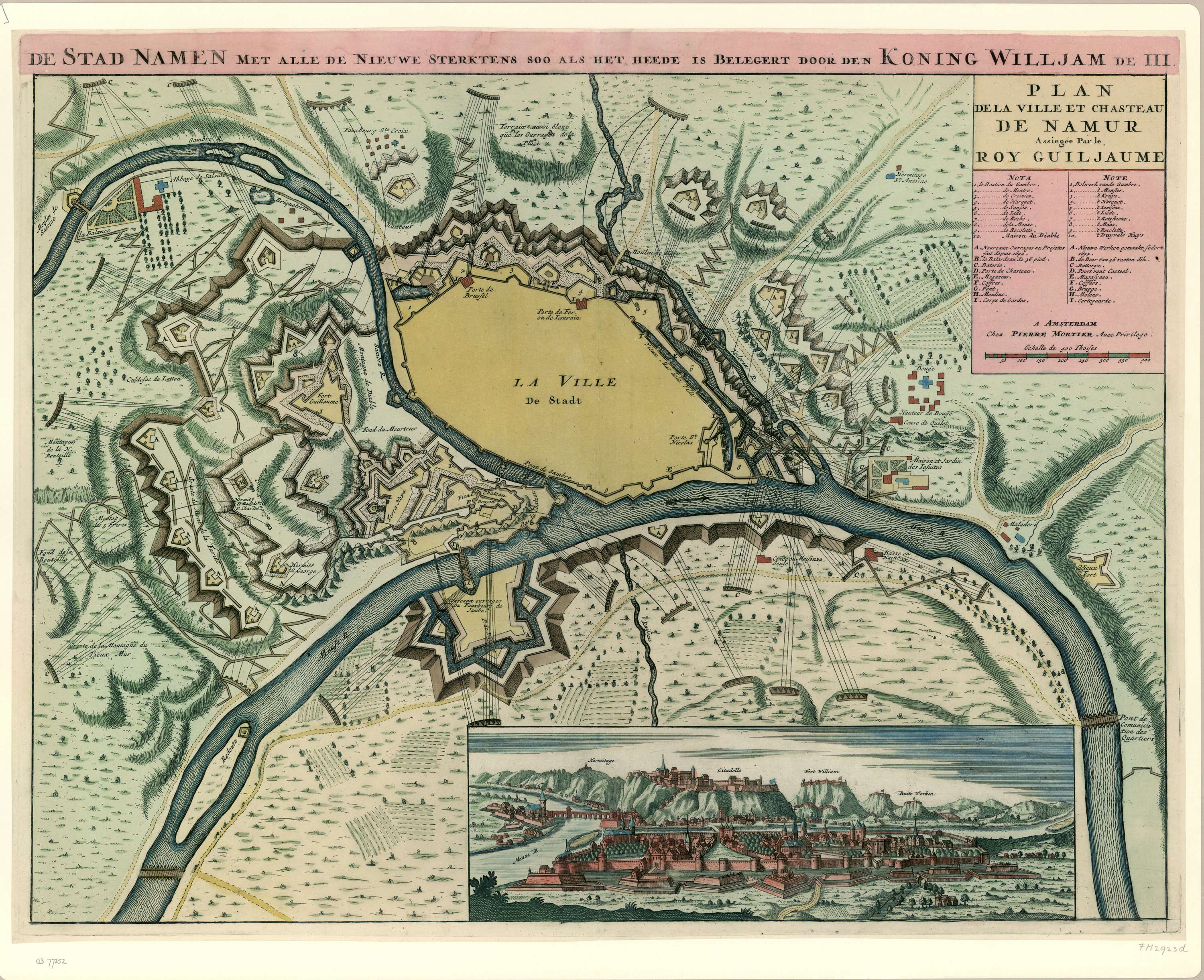 Ingekleurde kaart van de versterkingen van Namen bij...