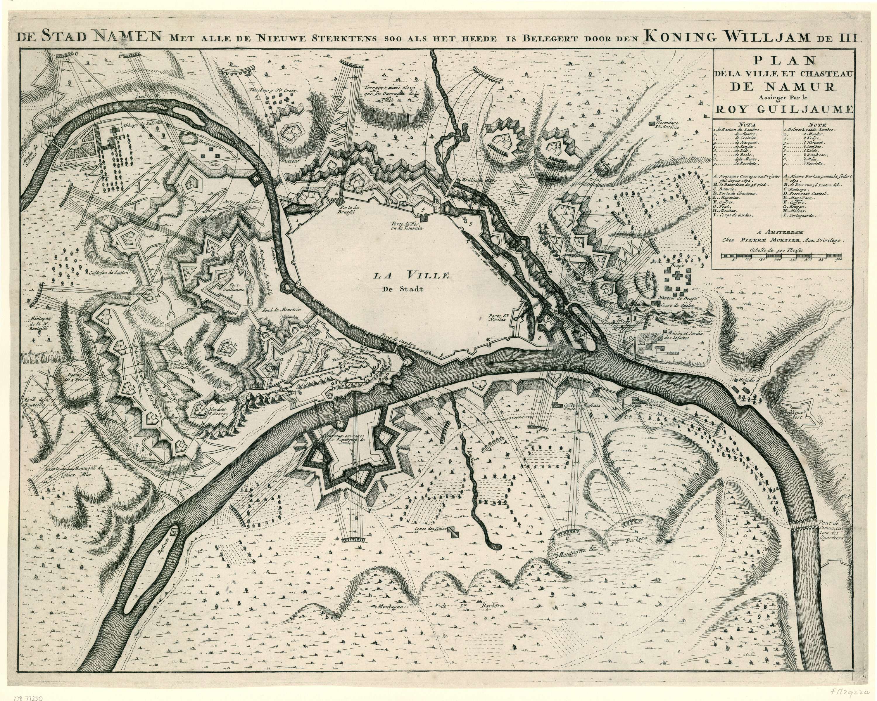 Kaart van de versterkingen van Namen bij het beleg i...