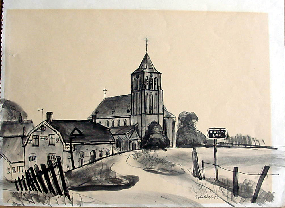 Tekening op papier met Oost-Indische inkt van Oud Ze...