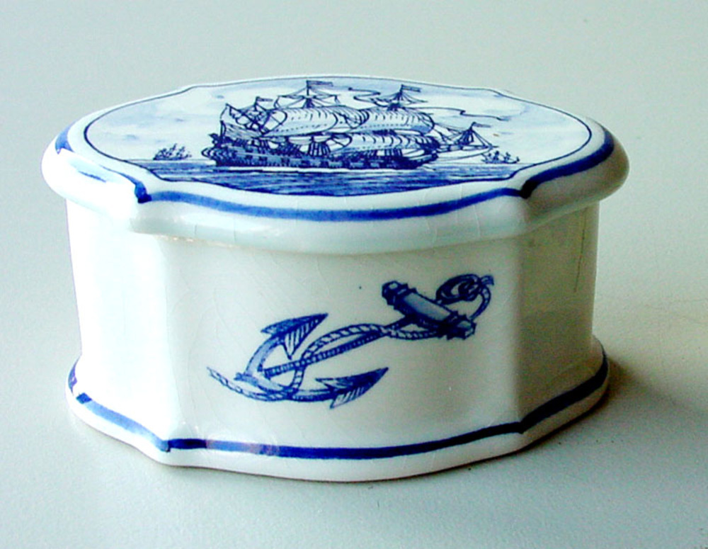Tabaksdoosje van keramiek met een voorstelling van e...