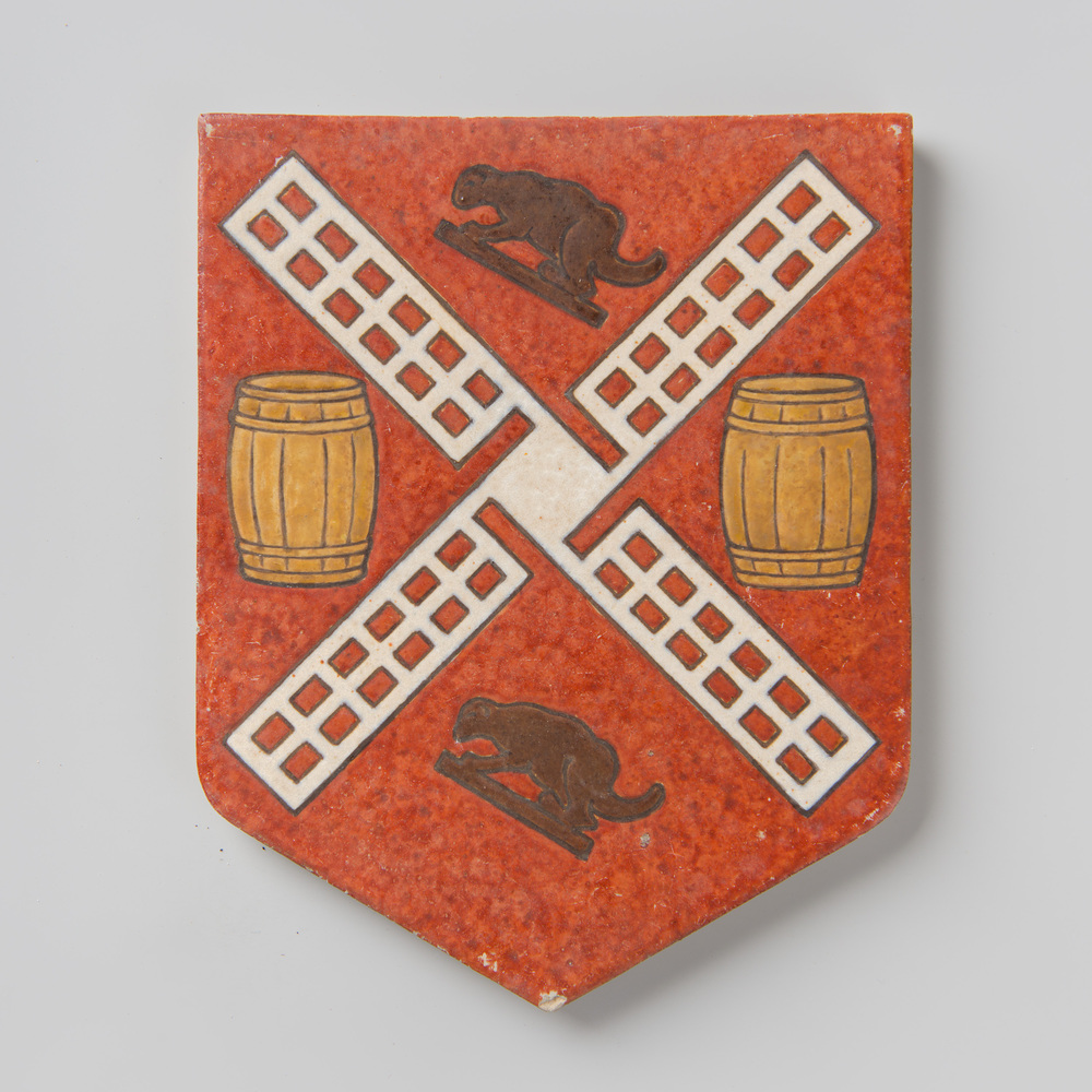 Tegel van aardewerk, voorstellende: wapen New York C...