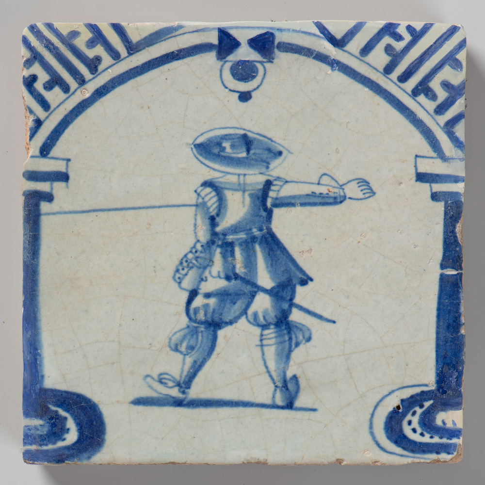 tegel van aardewerk met tinglazuur, voorstellende: s...