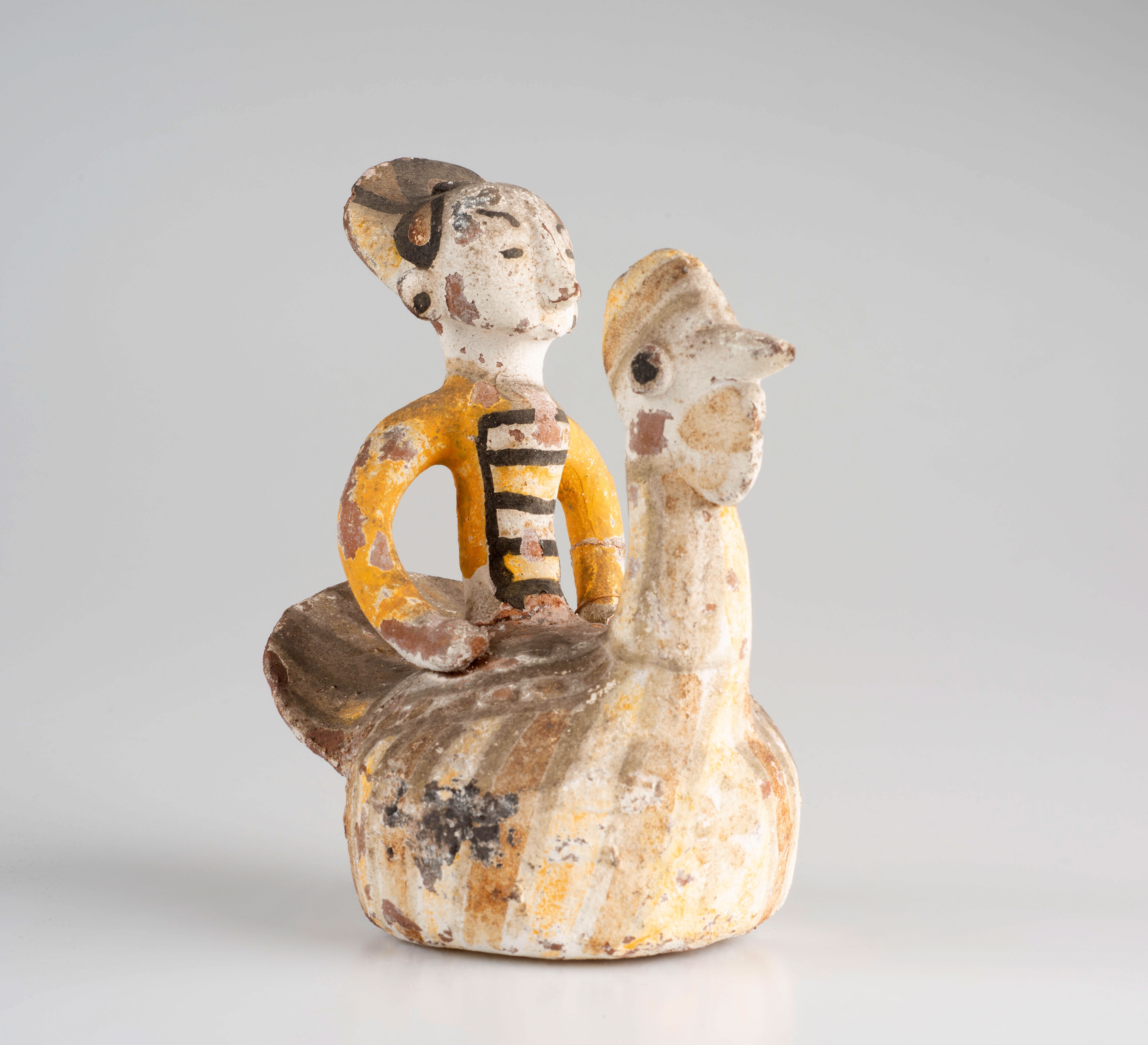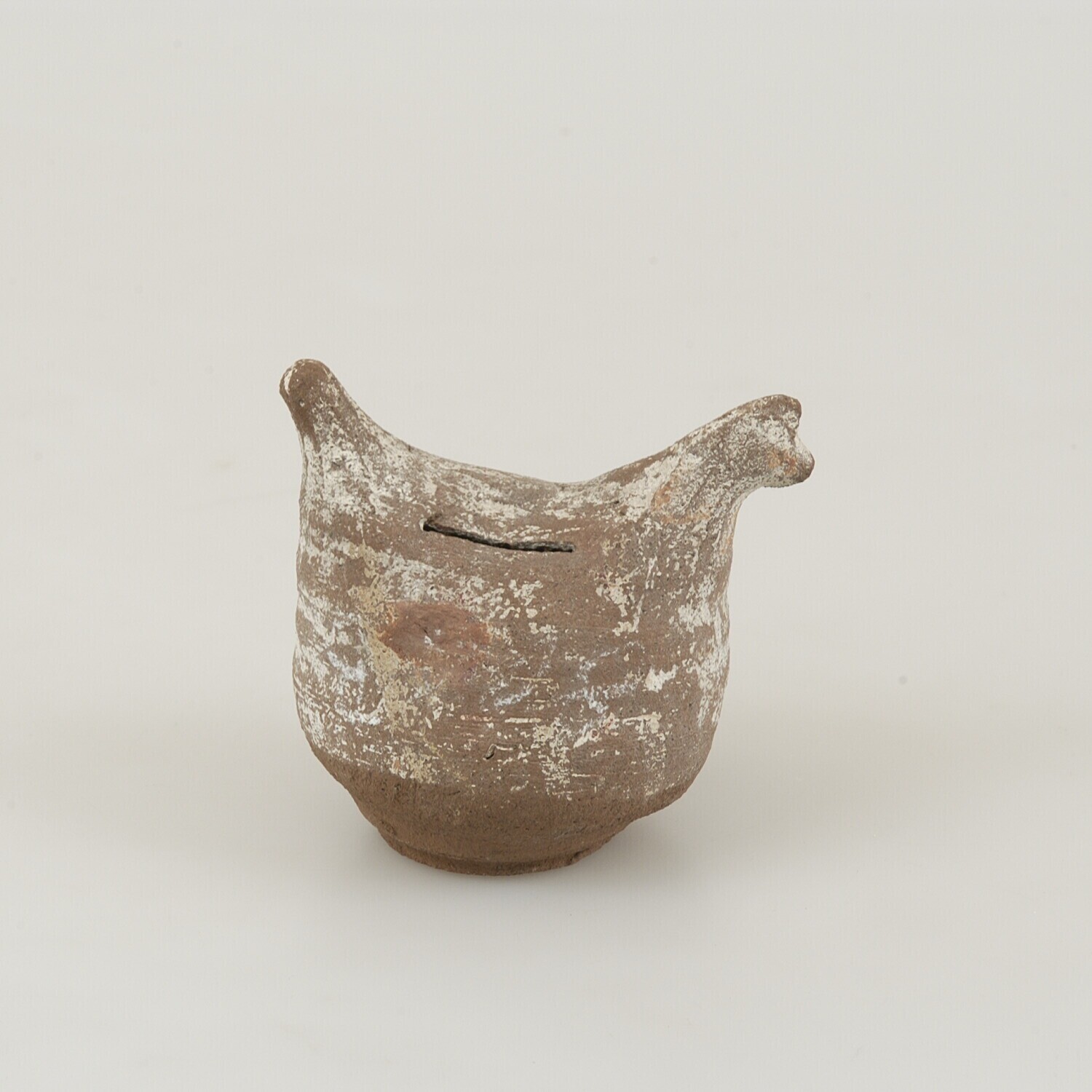Spaarpot van aardewerk in de vorm van een kip
