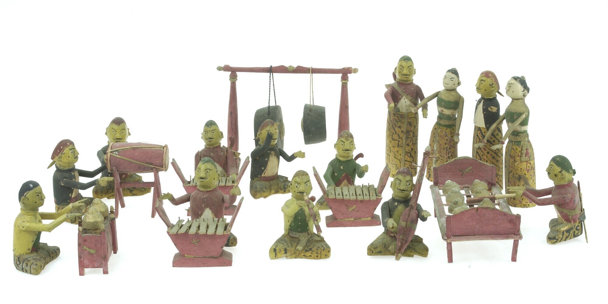 Model van een gamelan met bespelers en dansende pers...
