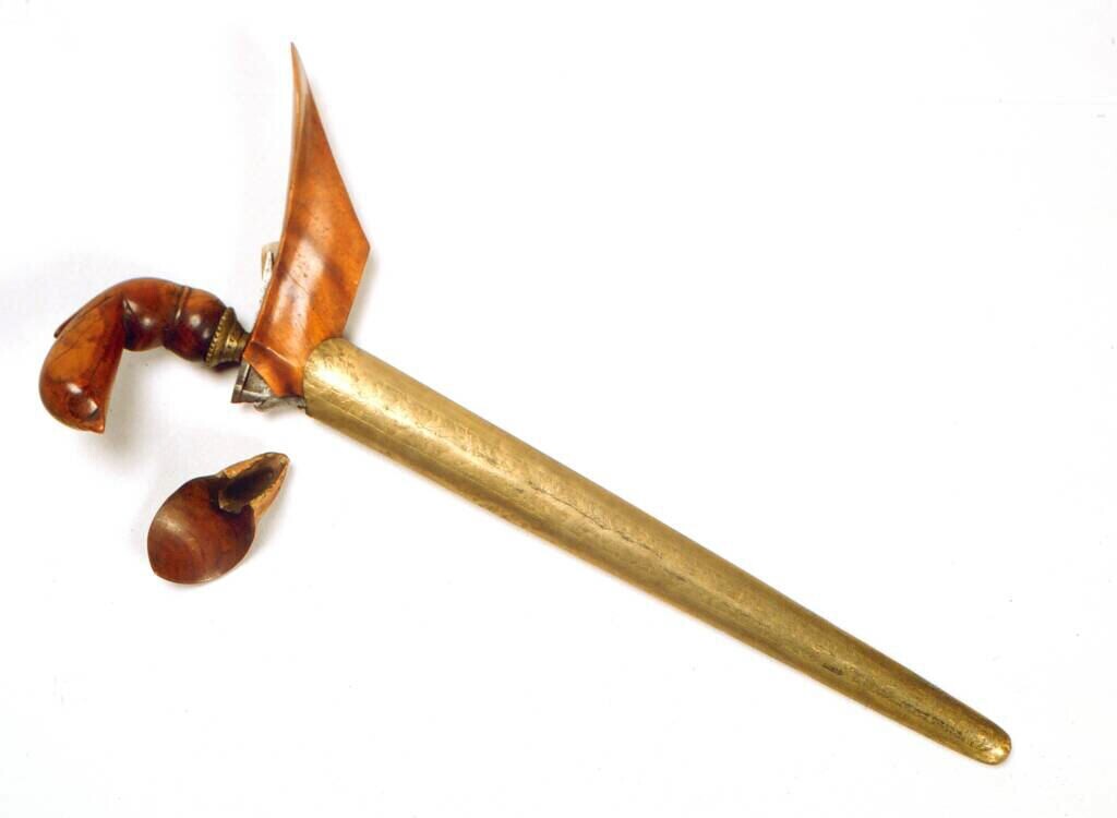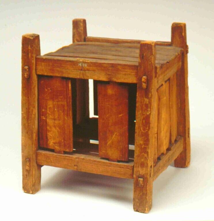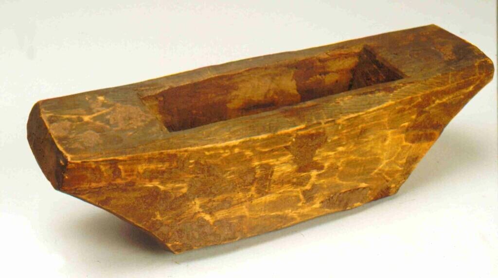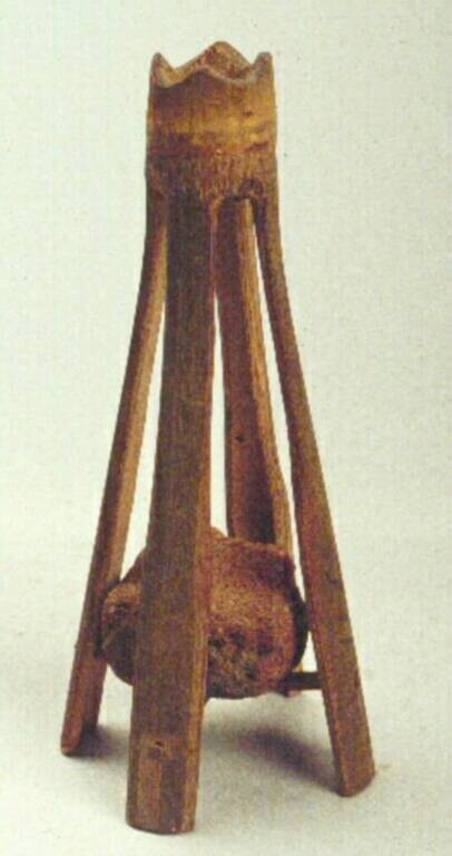 Stamper van hout, gebruikt als kinderspeelgoed